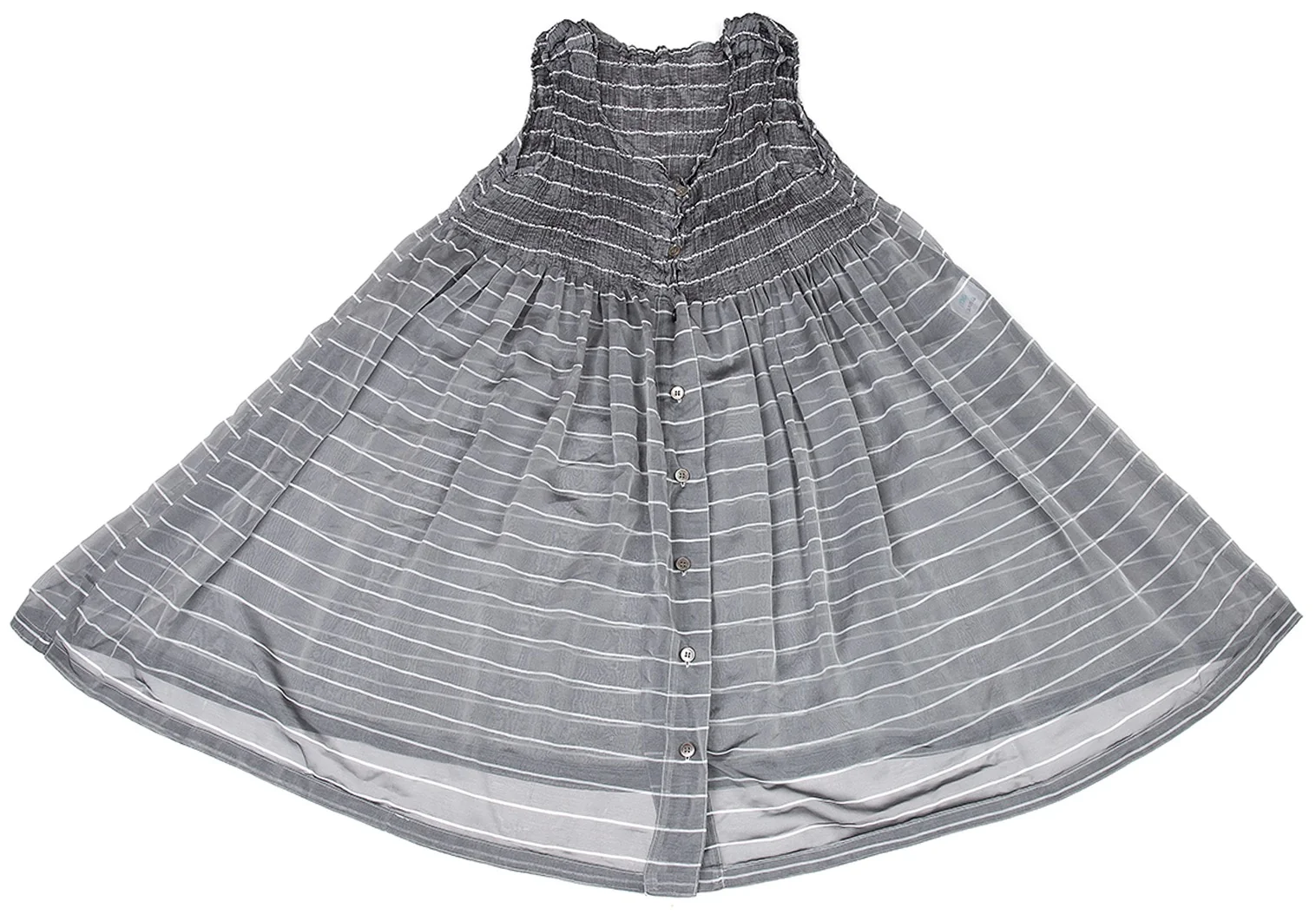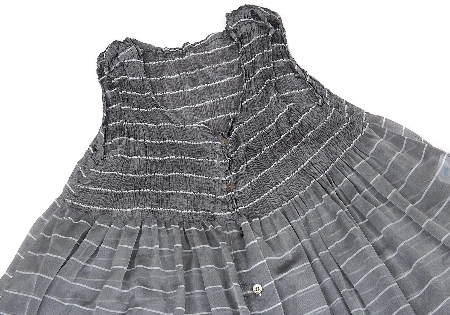 イッセイミヤケ ミーISSEY MIYAKE me シースルー切替ボーダーチュニック グレーF