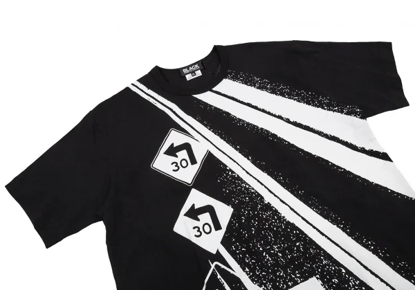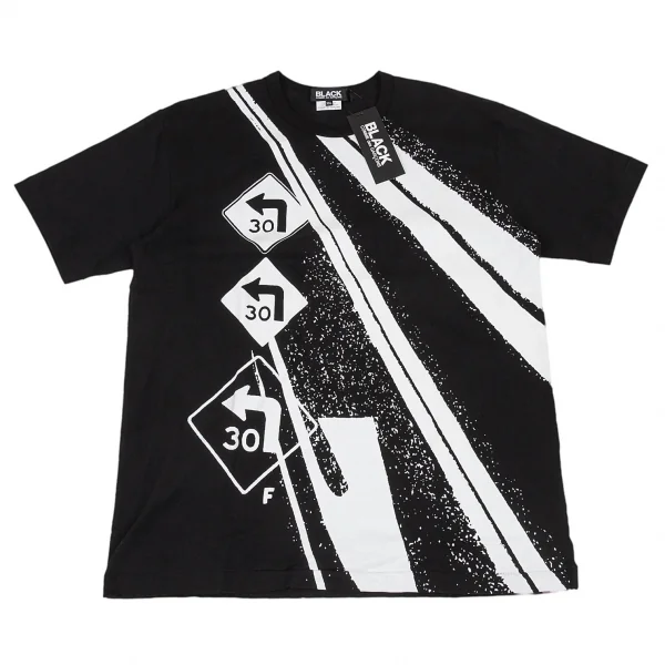新品!ブラックコムデギャルソンBLACK COMME des GARCONS ロードサインプリントTシャツ 黒XXL