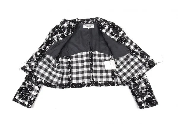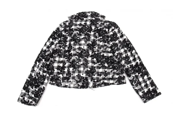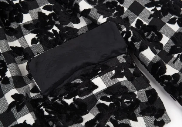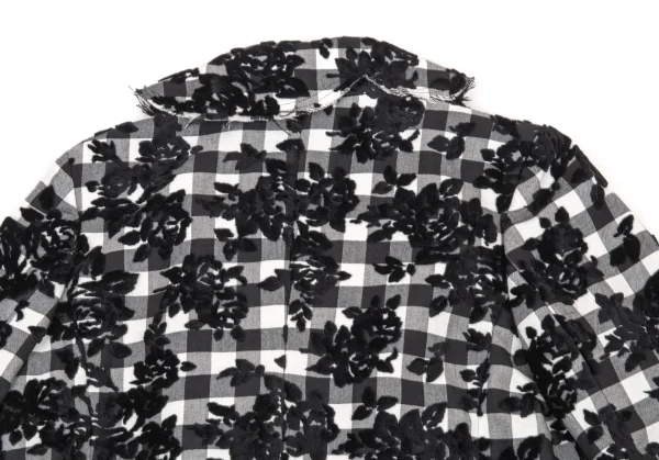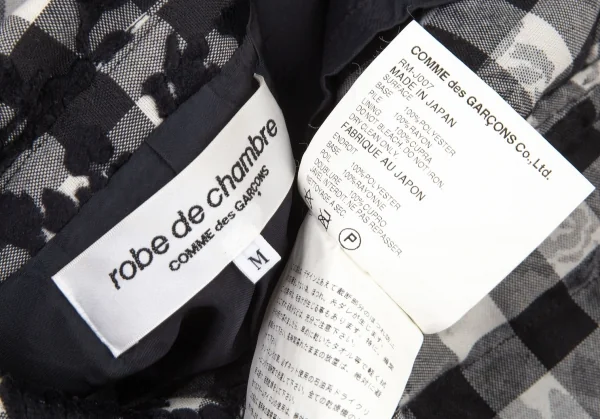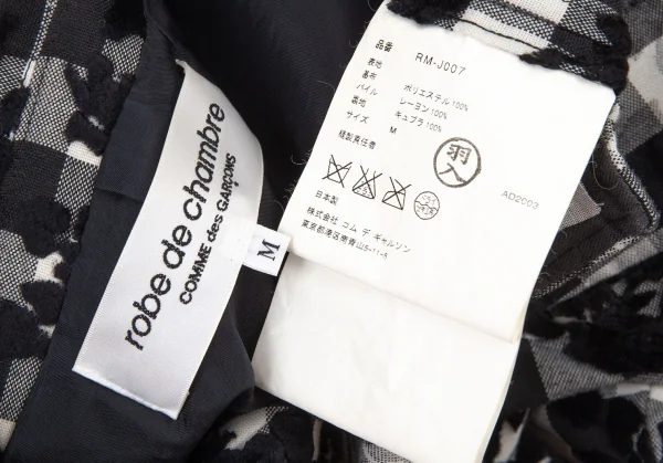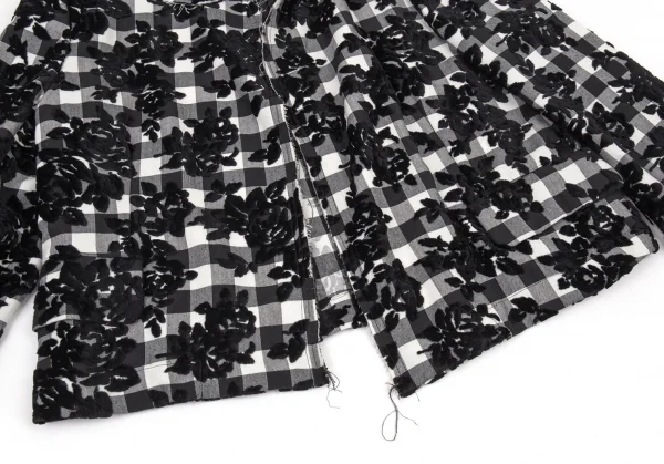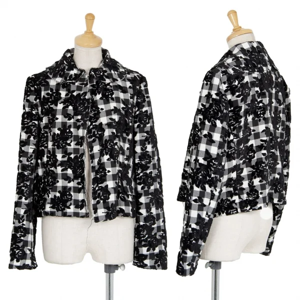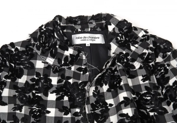 ローブドシャンブル コムデギャルソンrobe de chambre COMME des GARCONSローズフロッキープリントチェックジャケット 白黒M