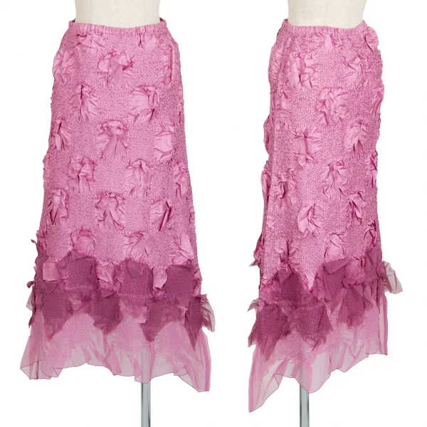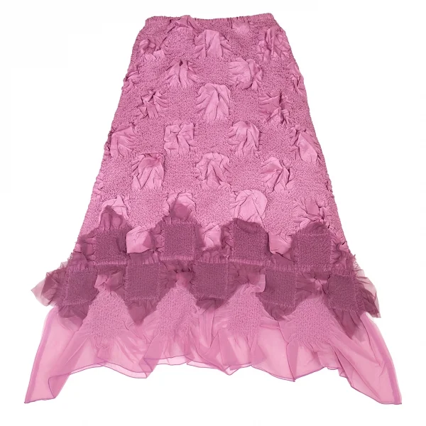 ヨシキヒシヌマYOSHIKI HISHINUMA チェッカーシワプリーツ加工スカート ピンク2