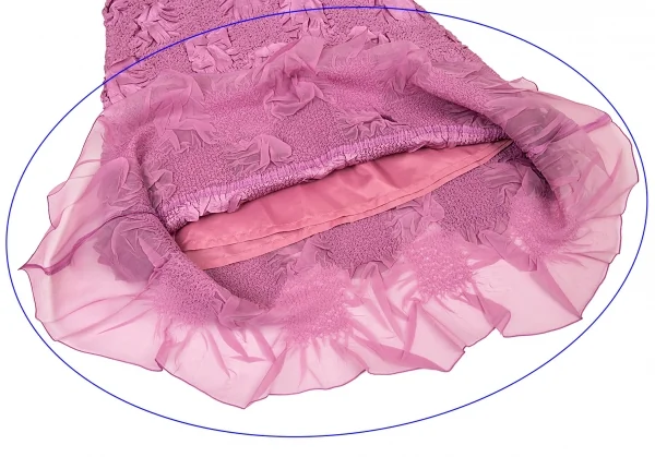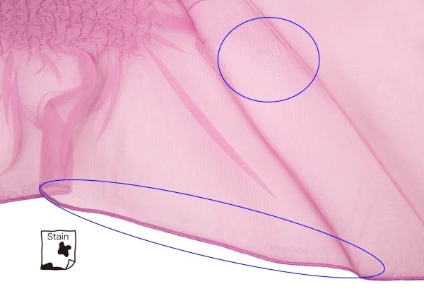 裾生地に透け感があります。裾全体に数カ所の目寄れ、後ろ右裾に薄シミ、裾先数カ所に薄汚れがあります。(画像参照)その他ほつれ等ありません。クリーニング済み