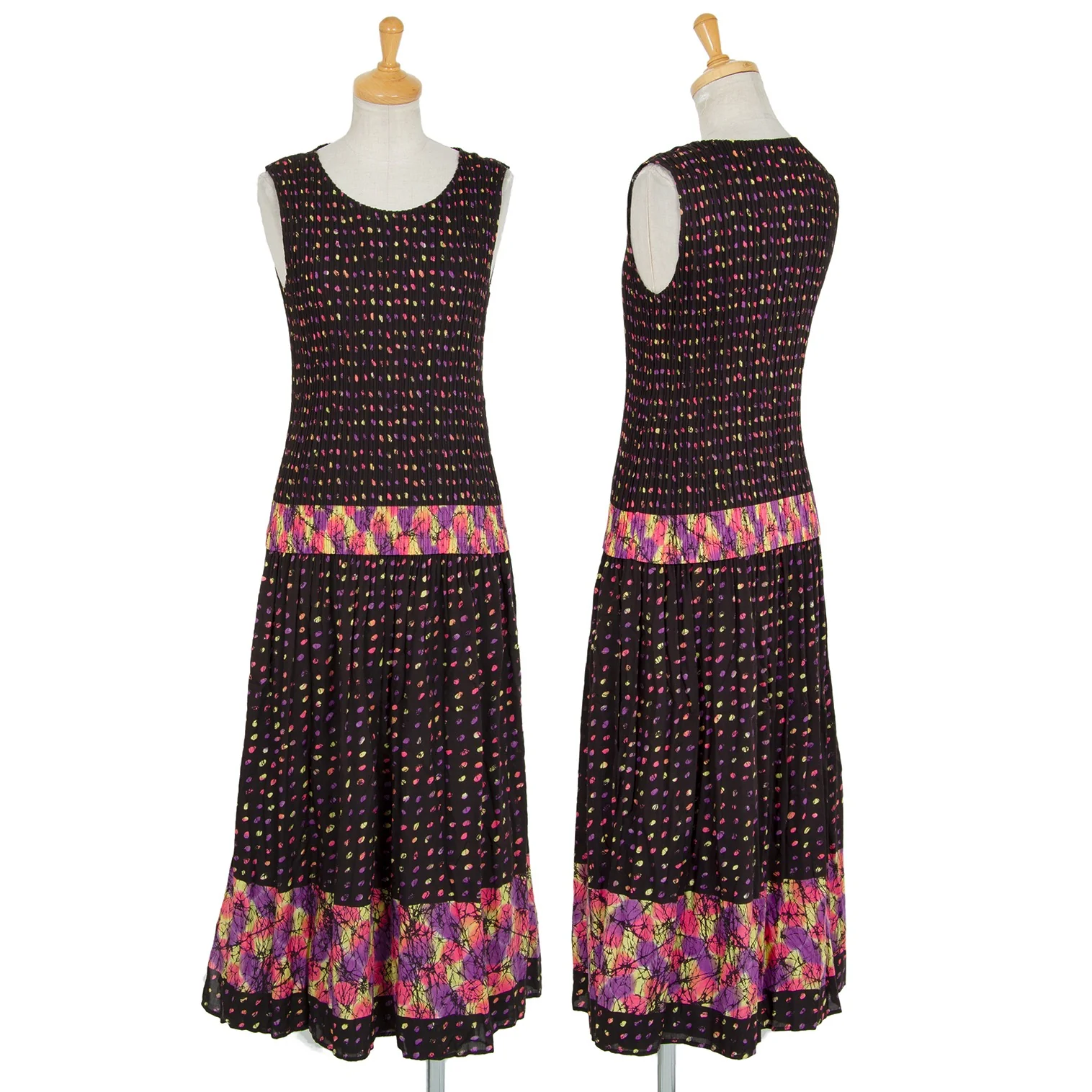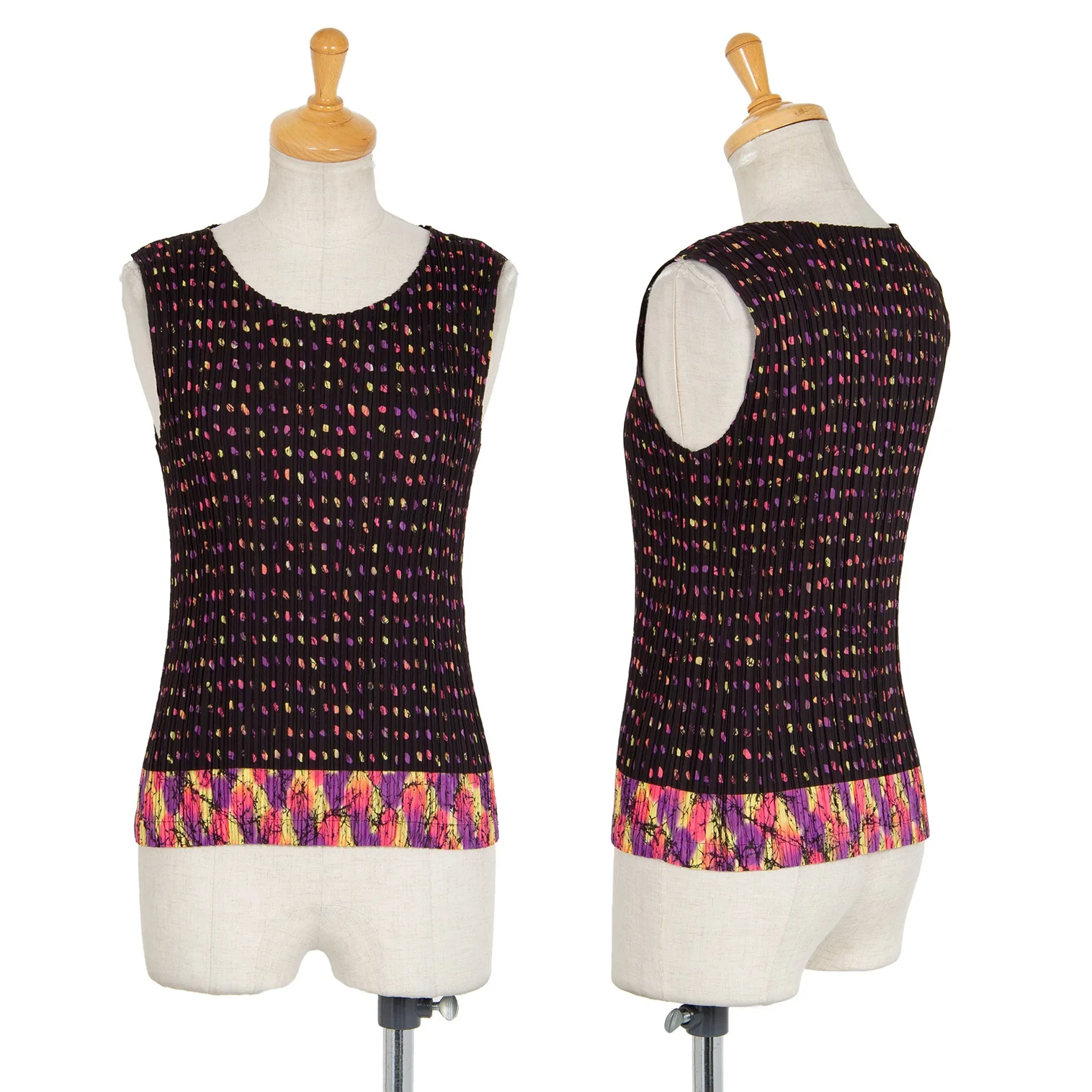 イッセイミヤケ フェットISSEY MIYAKE FETE ドットグラフィックプリントプリーツタンクトップ 黒マルチ2