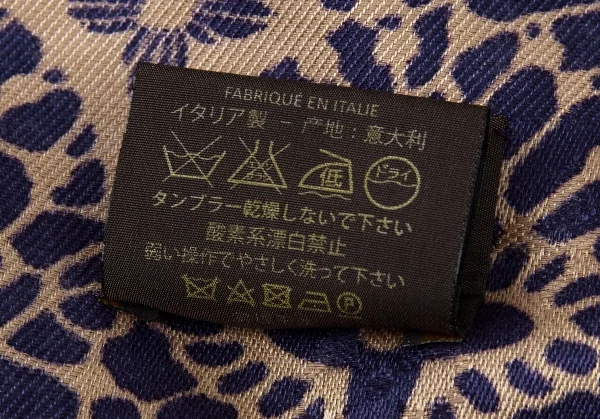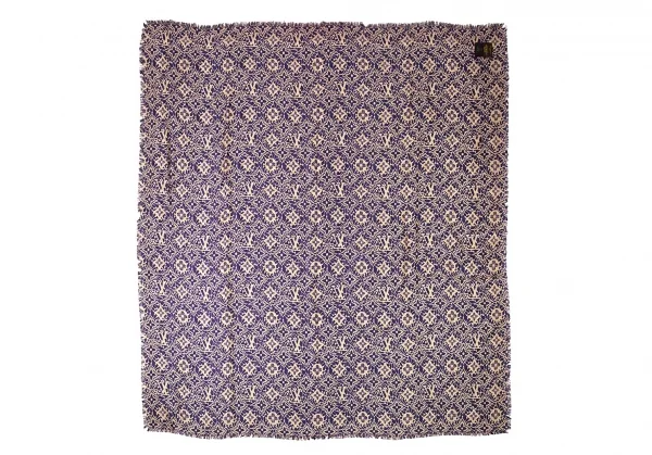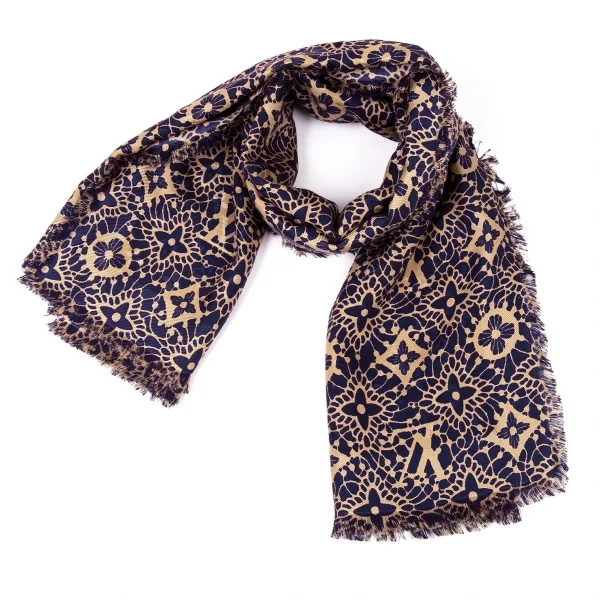 ルイ・ヴィトンLOUIS VUITTON シルクウール大判スカーフ ベージュ紺