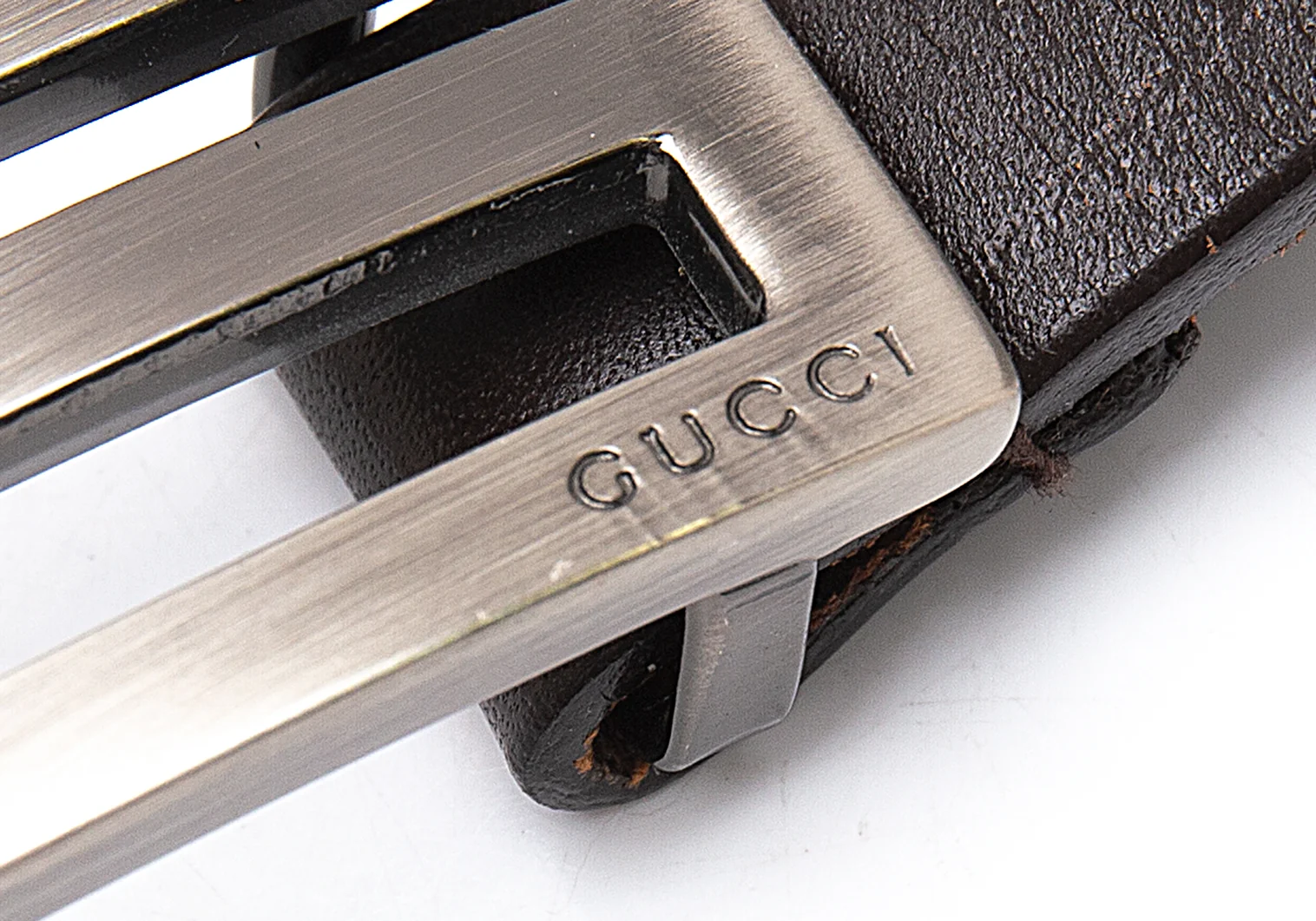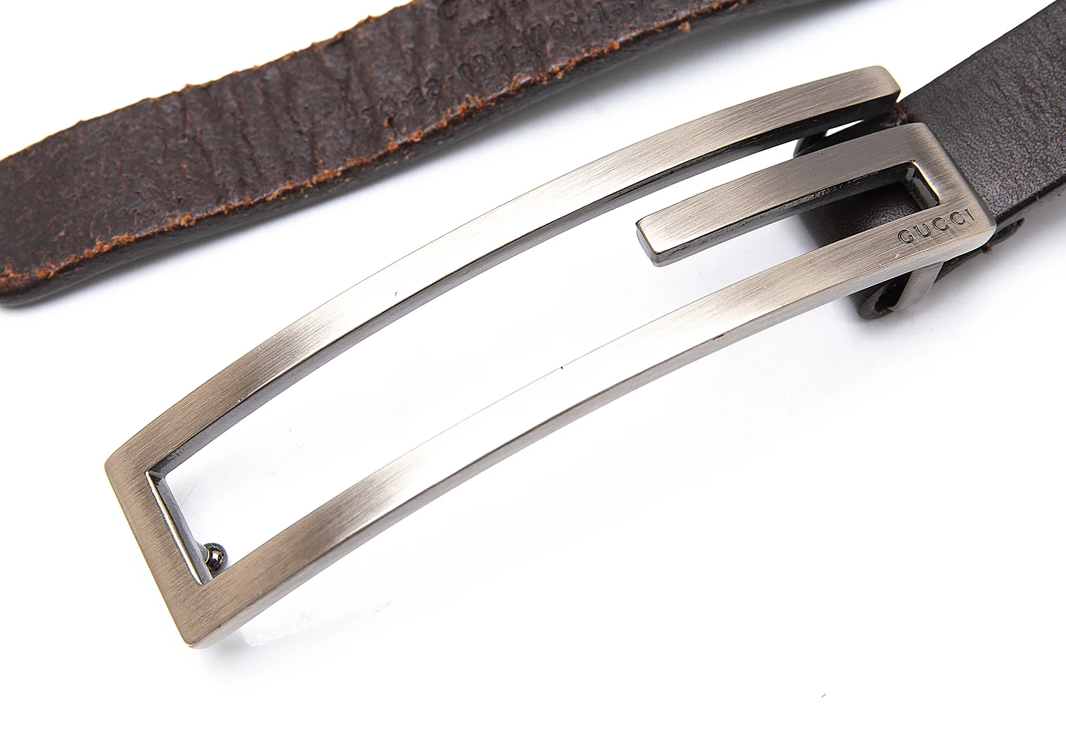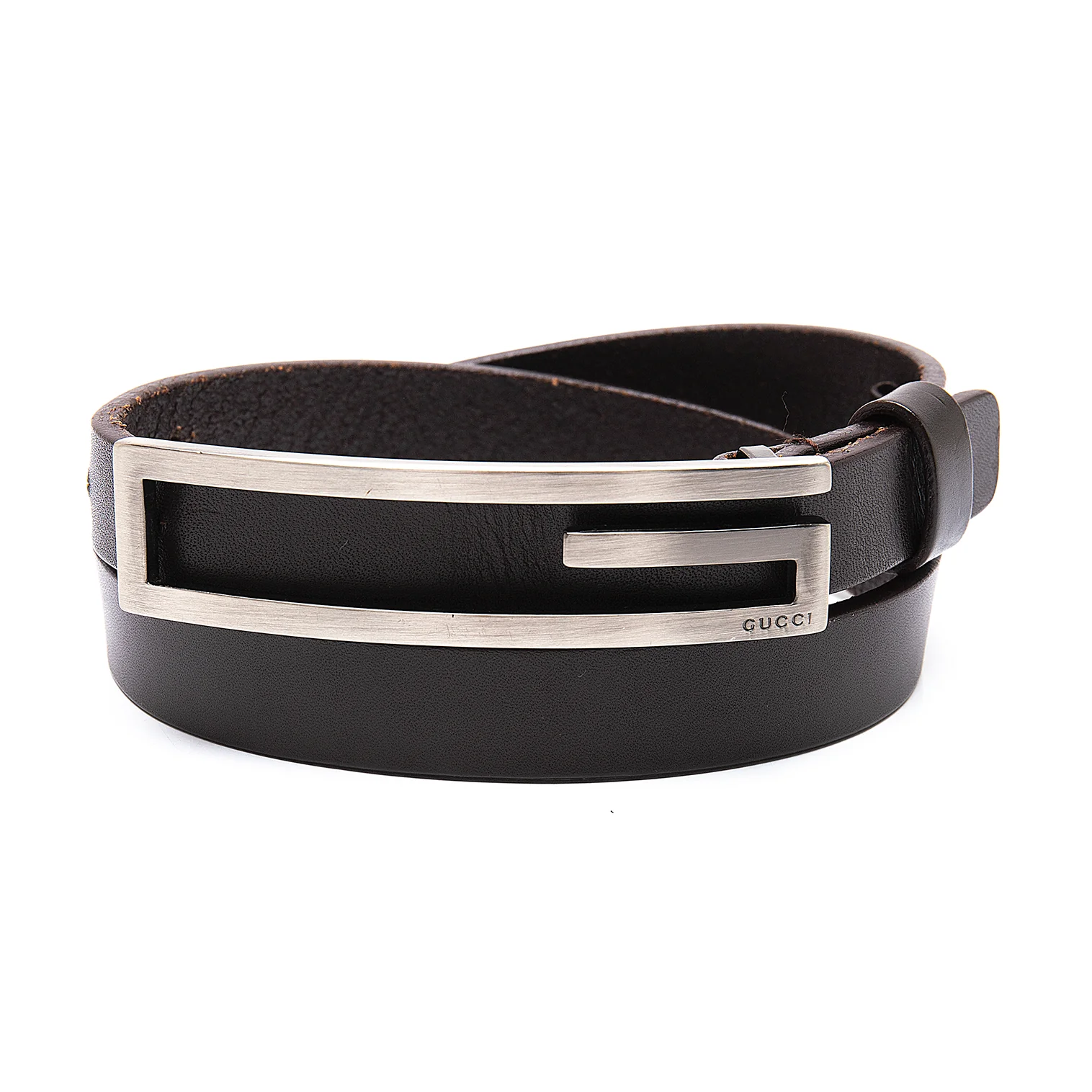 グッチGUCCI Gバックルナローレザーベルト 茶