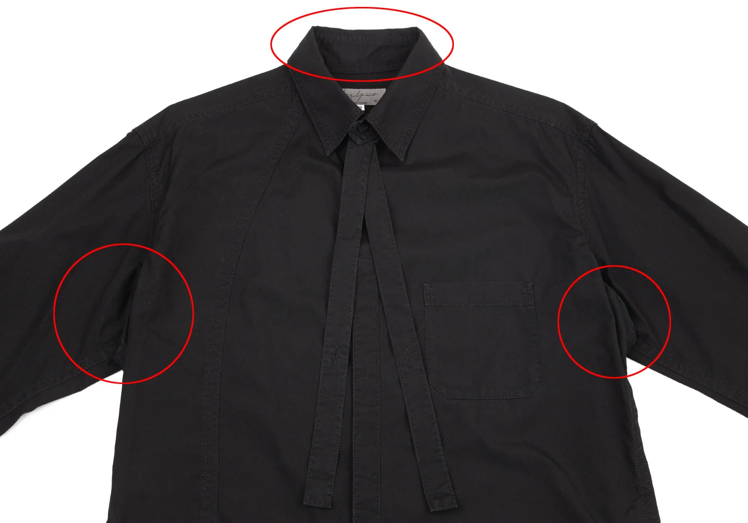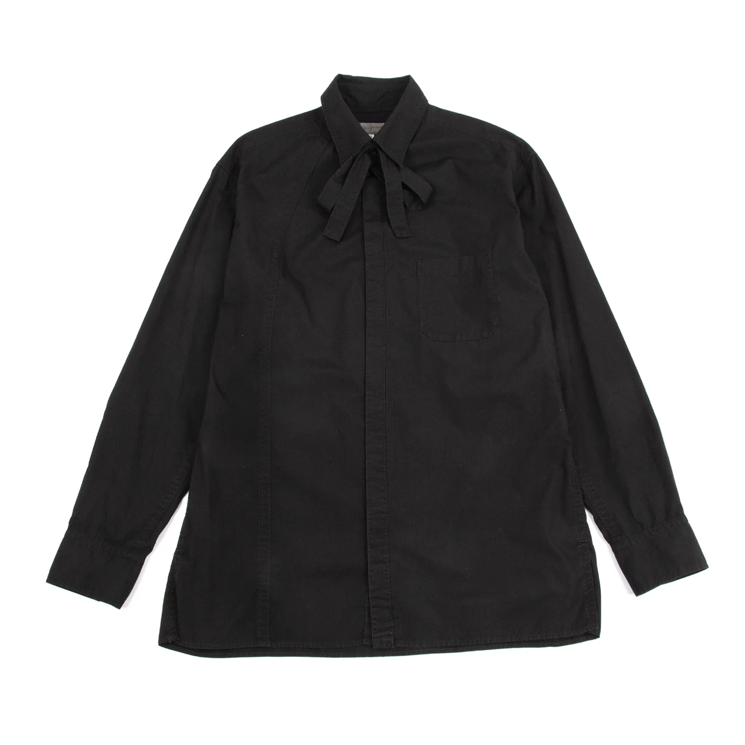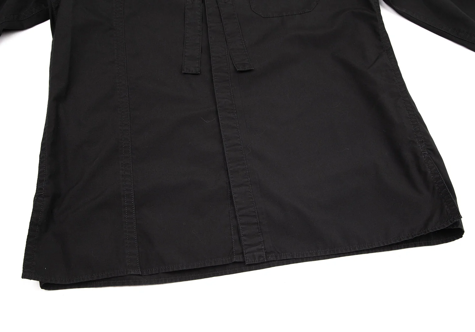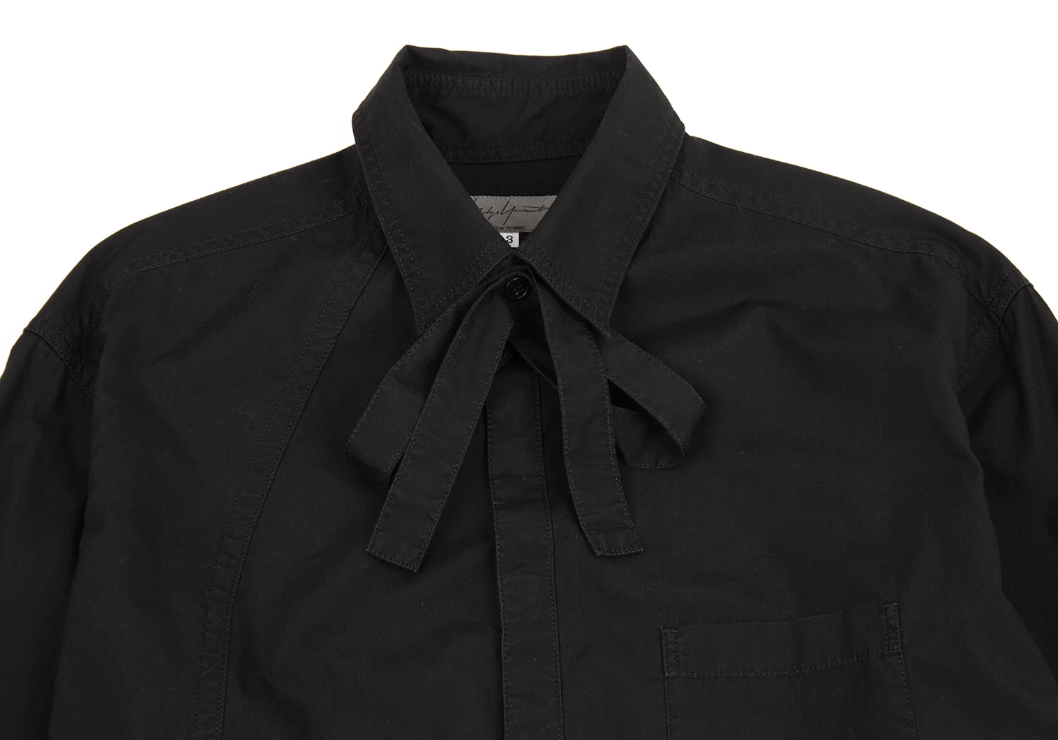 ヨウジヤマモト プールオムYohji Yamamoto POUR HOMME コットンパッカリング切替ネックリボン環縫いシャツ 黒3