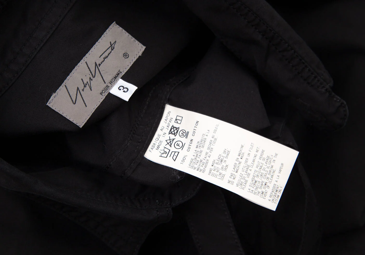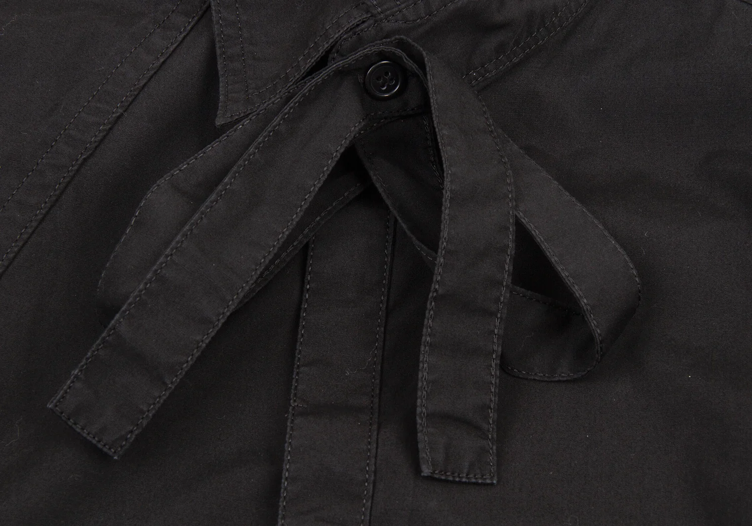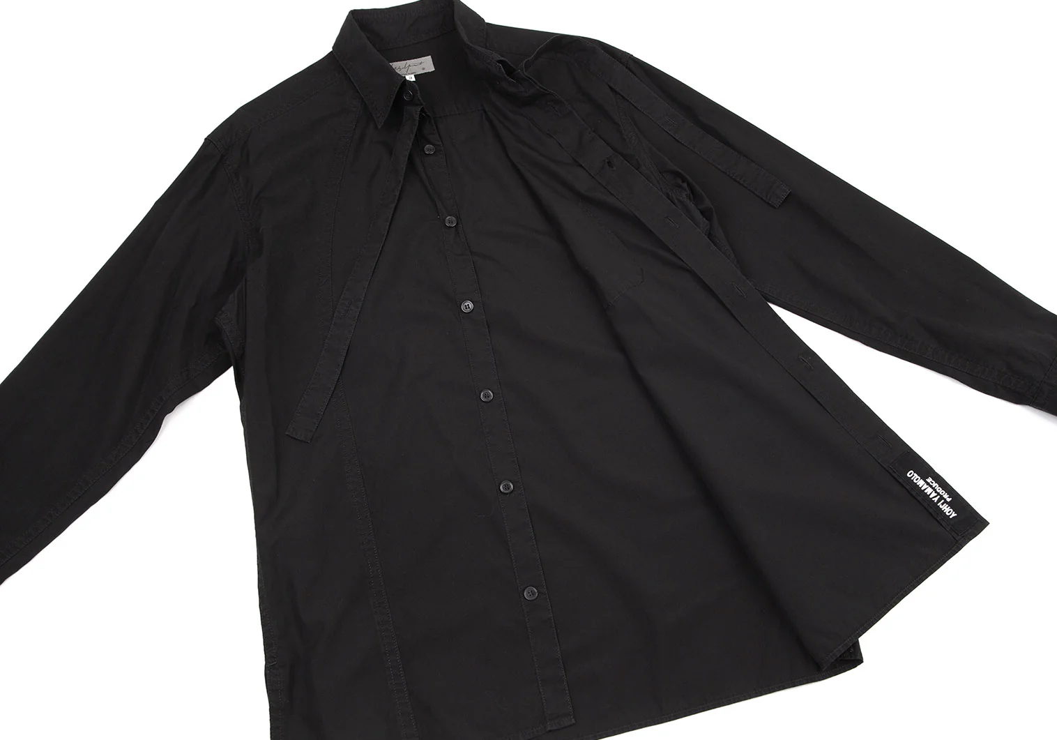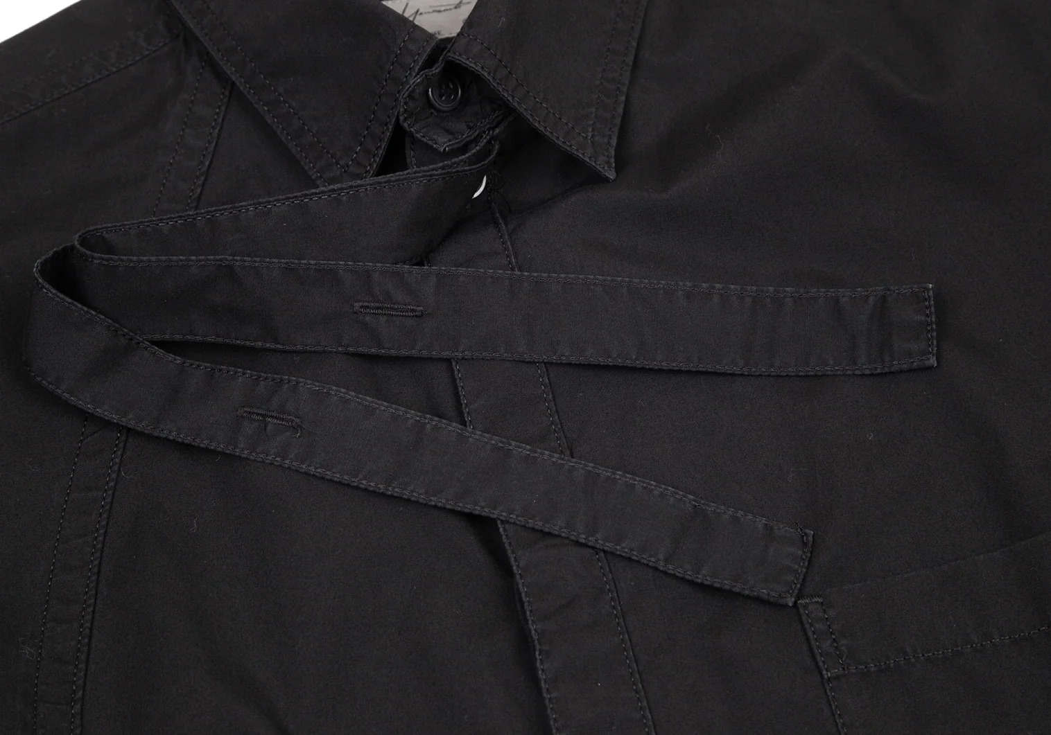 ヨウジヤマモト プールオムYohji Yamamoto POUR HOMME コットンパッカリング切替ネックリボン環縫いシャツ 黒3