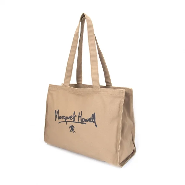 マーガレットハウエルMARGARET HOWELL ロゴプリントキャンバストートバッグ カーキ