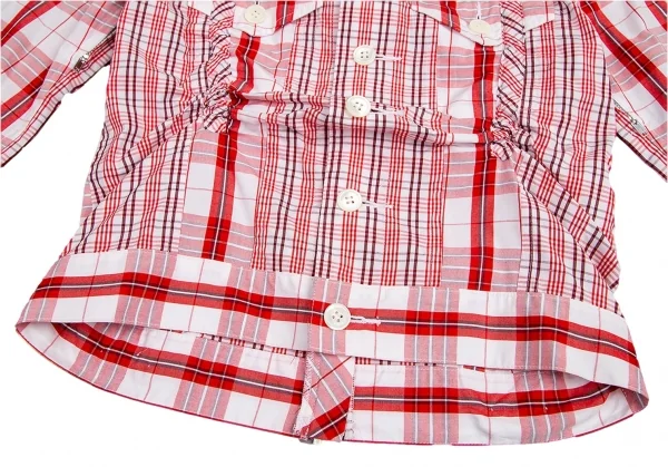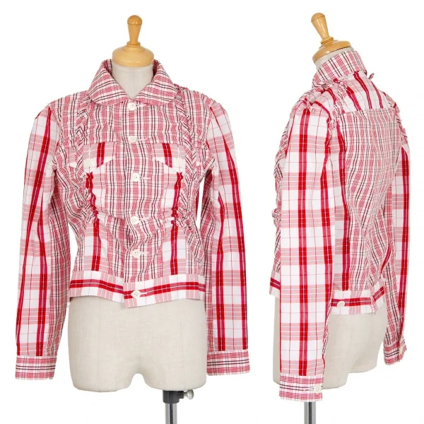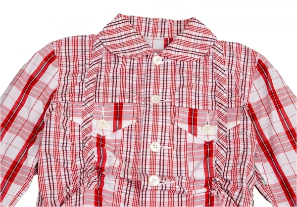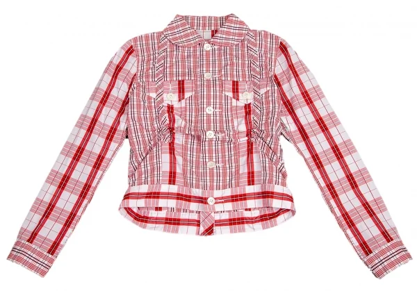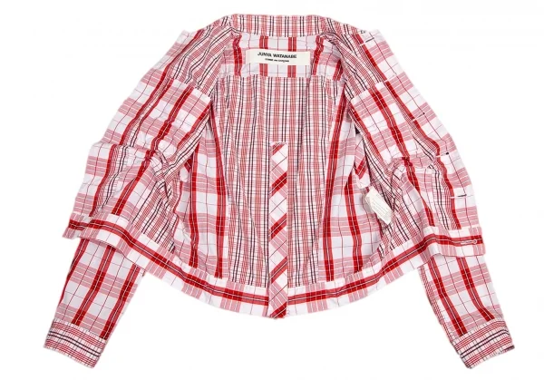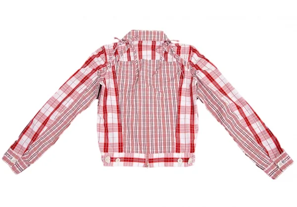 ジュンヤワタナベ コムデギャルソンJUNYA WATANABE COMME des GARCONS チェック切替シャーリングショートジャケット 白赤S位