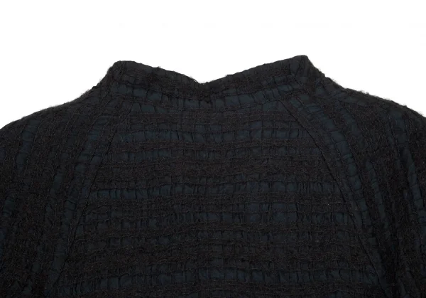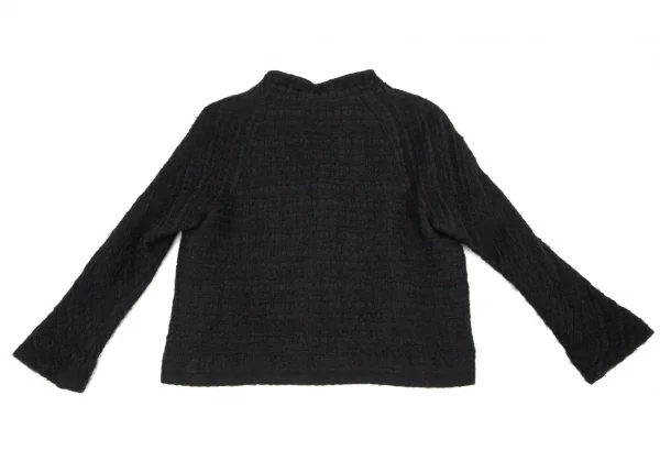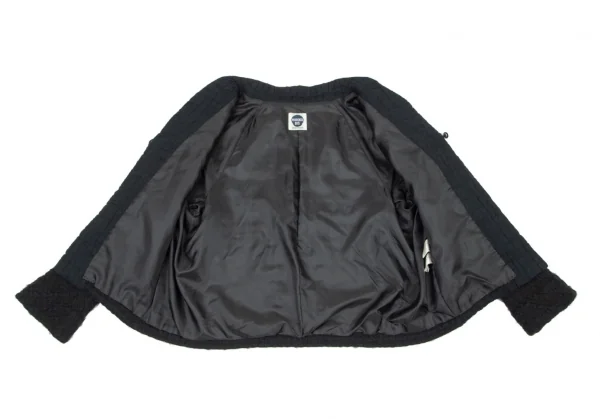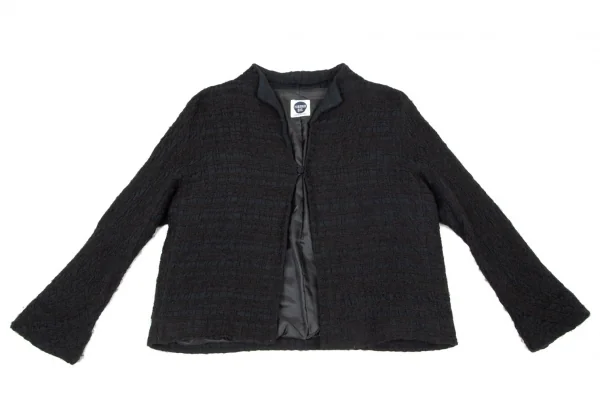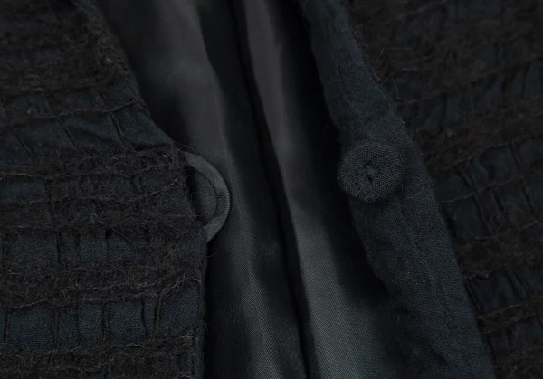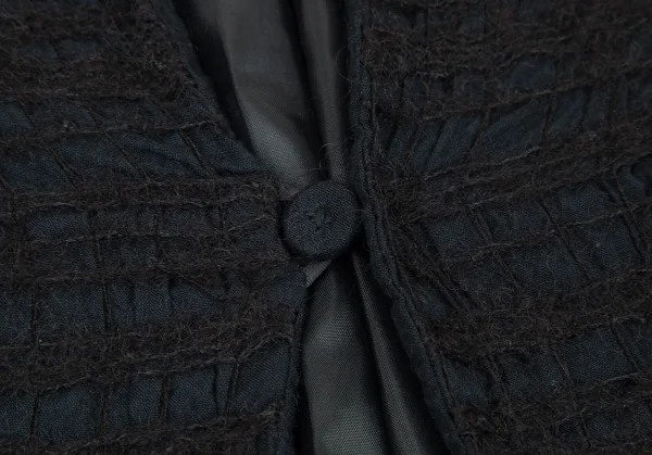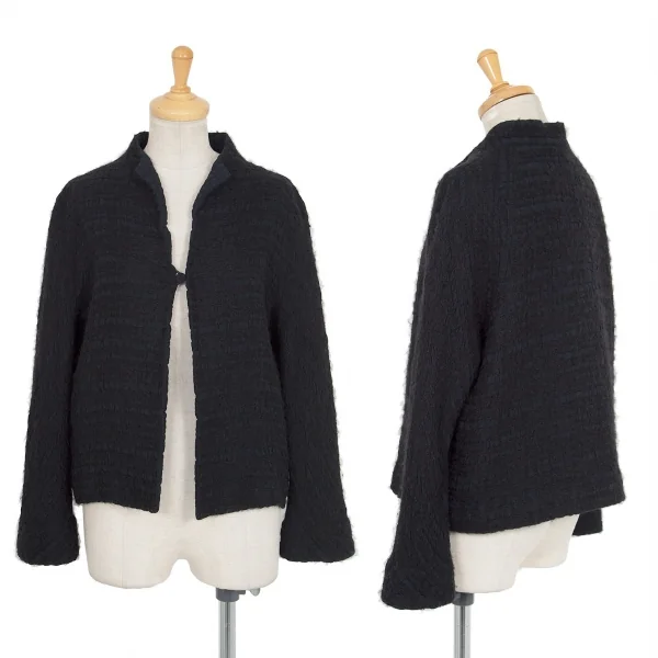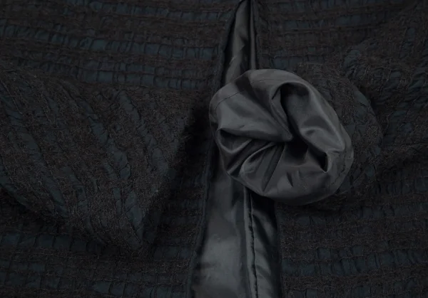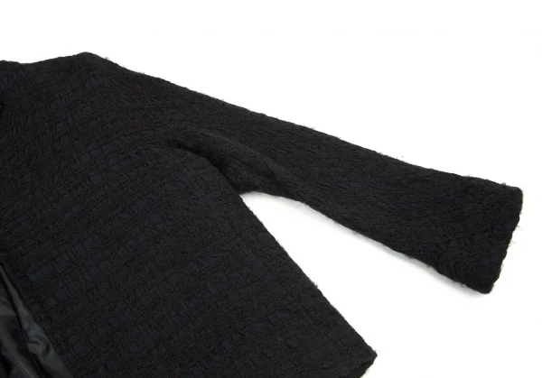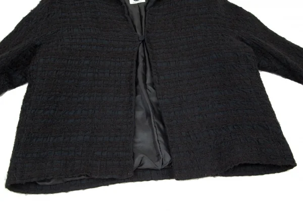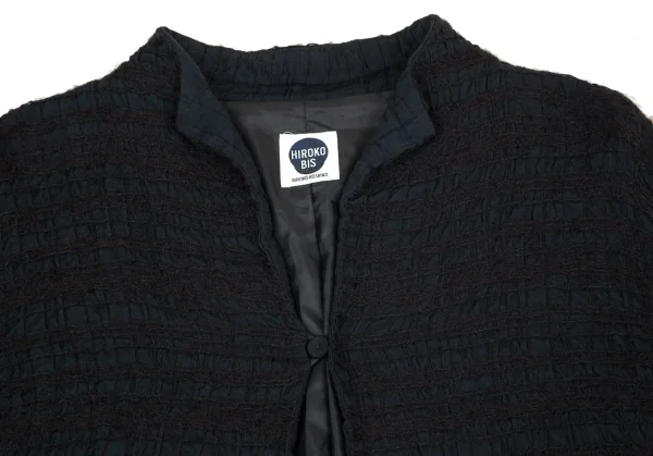 ヒロコビスHIROKO BIS 起毛チェックスタンドカラージャケット 黒M位