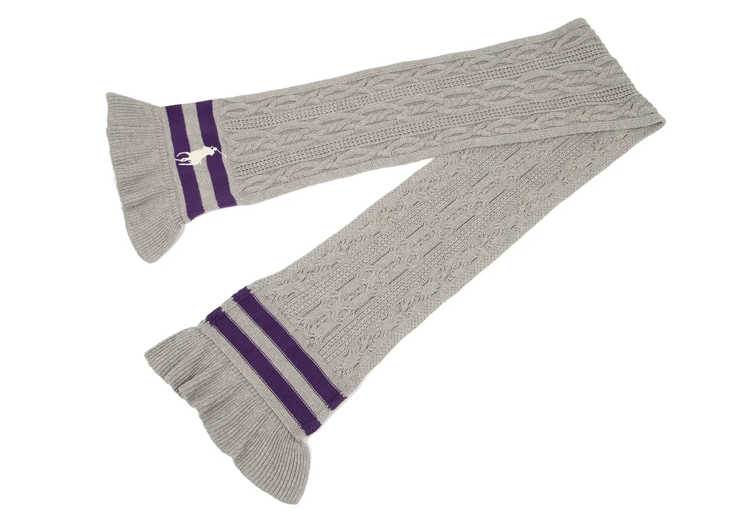 ラルフローレンRalph Lauren コットンウールケーブルニットマフラー グレー