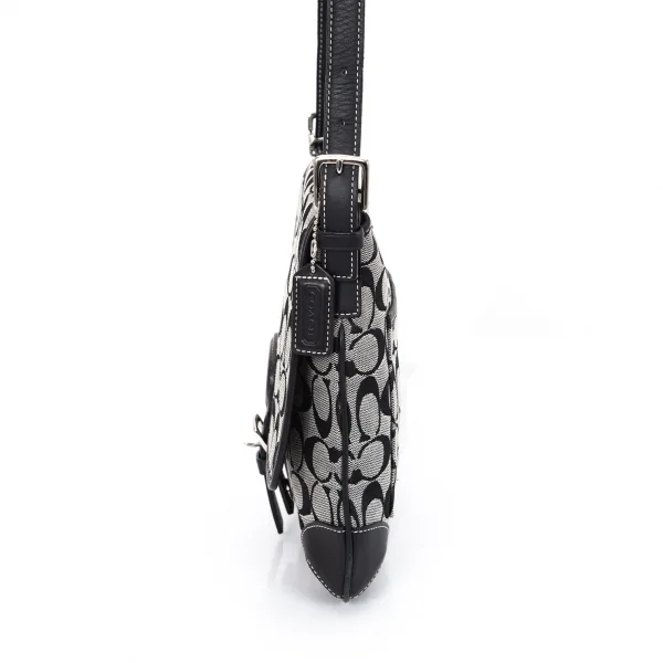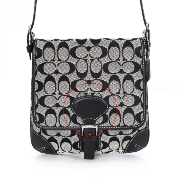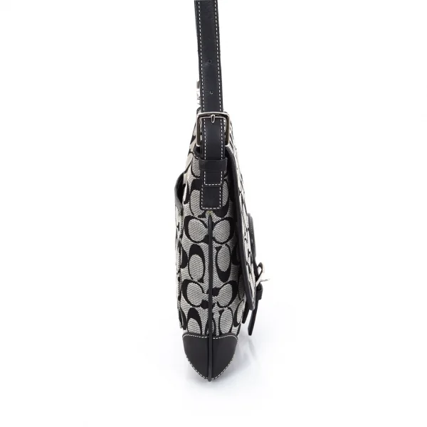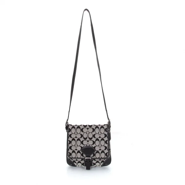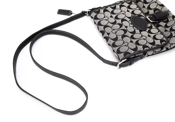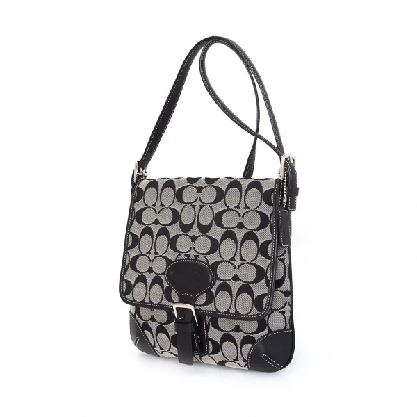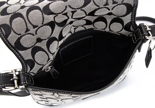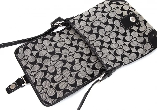 コーチCOACH シグネチャー柄フラップショルダーバッグ オフ黒