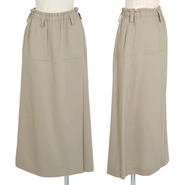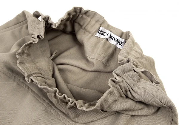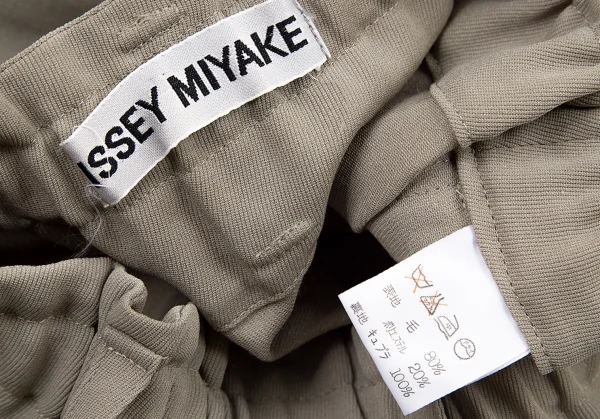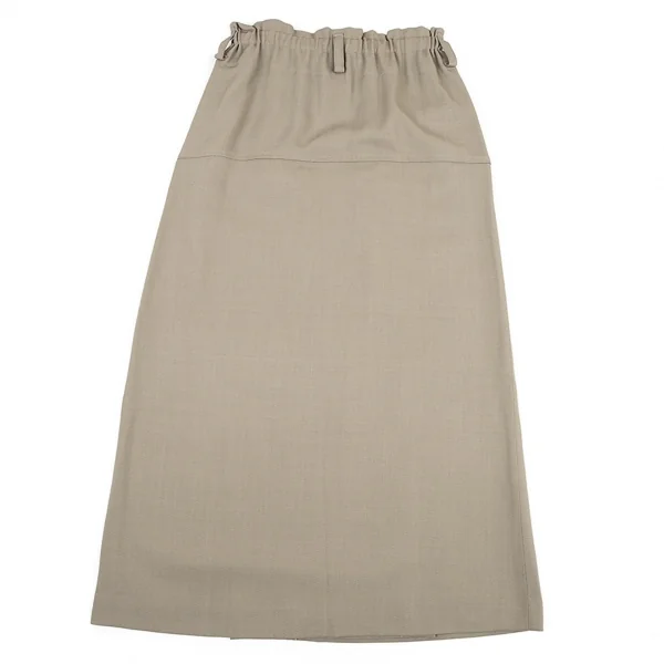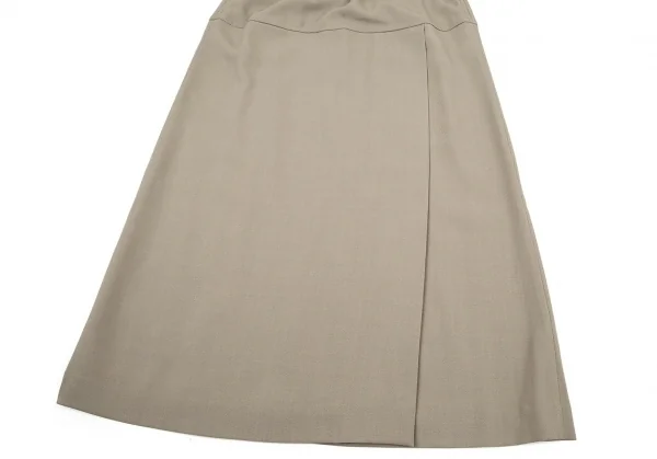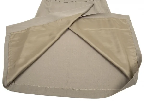 イッセイミヤケISSEY MIYAKEウールポリカルゼ切替スリットスカート ベージュM