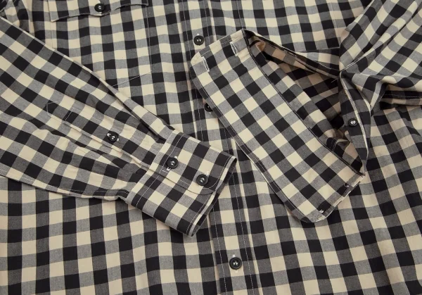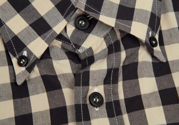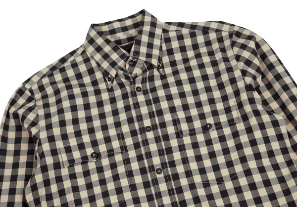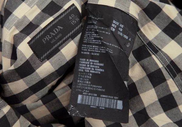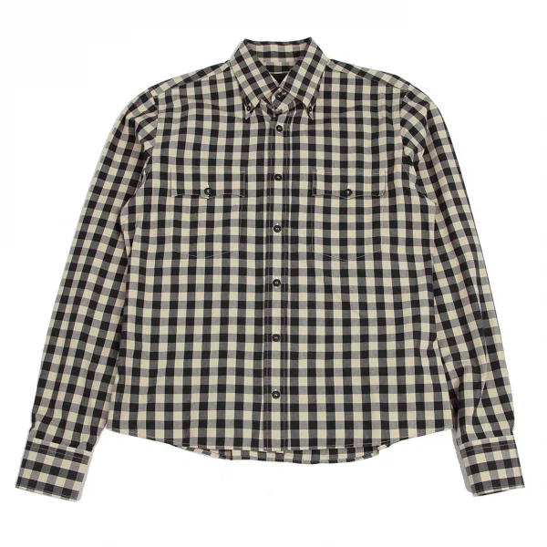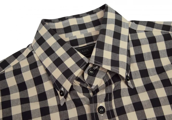 プラダPRADA ボタンダウンブロックチェックシャツ ベージュ黒40
