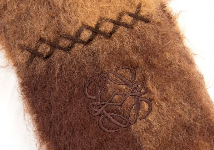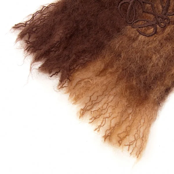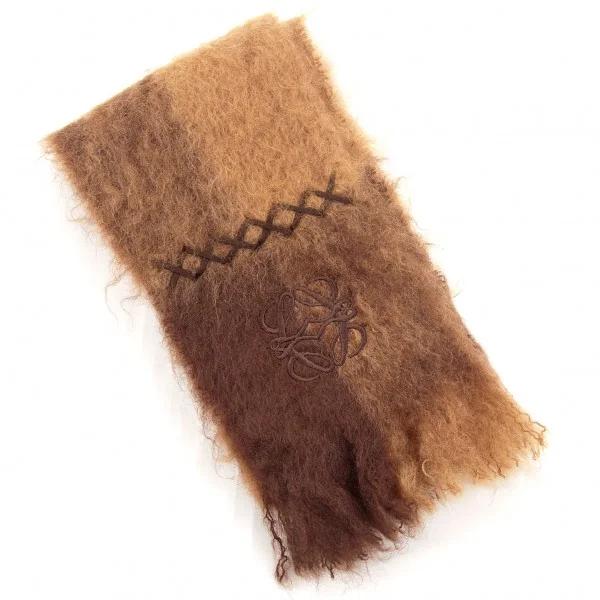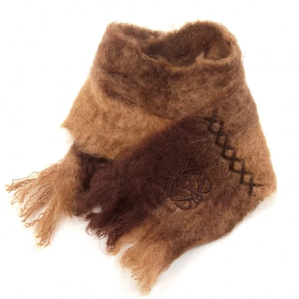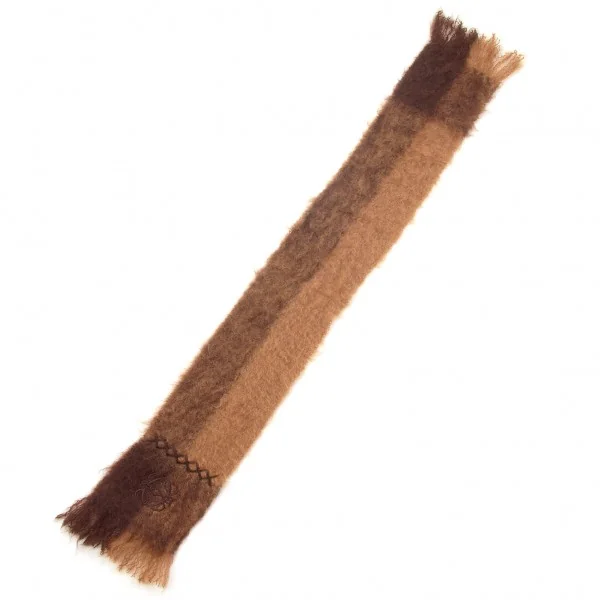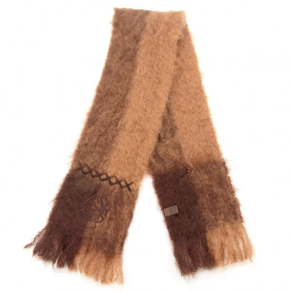 ロエベLOEWE  ロゴ刺繍モヘアウールマフラー 茶20×144