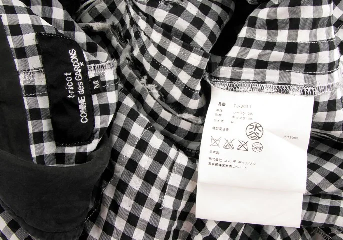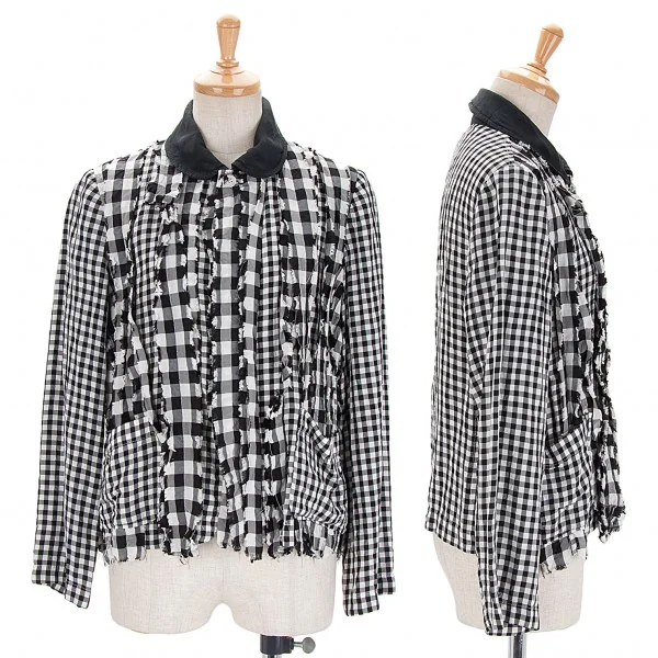 トリコ コムデギャルソンtricot COMME des GARCONSレーヨンキュプラギンガムチェックシャツブルゾン 白黒M