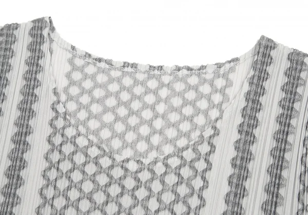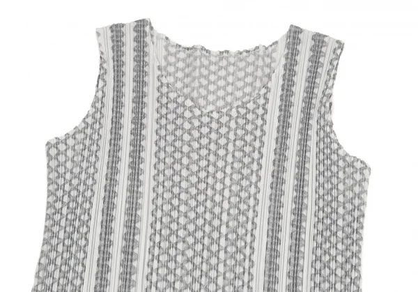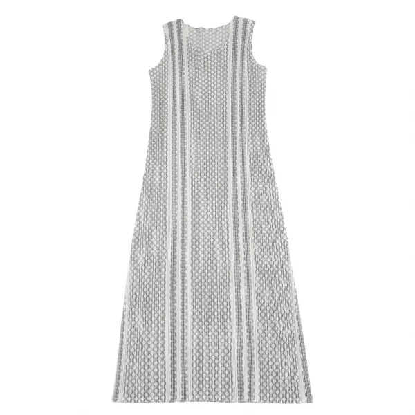 プリーツプリーズPLEATS PLEASE マルチラインストライプワンピース グレー濃淡3