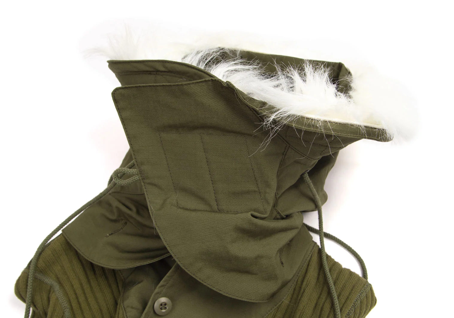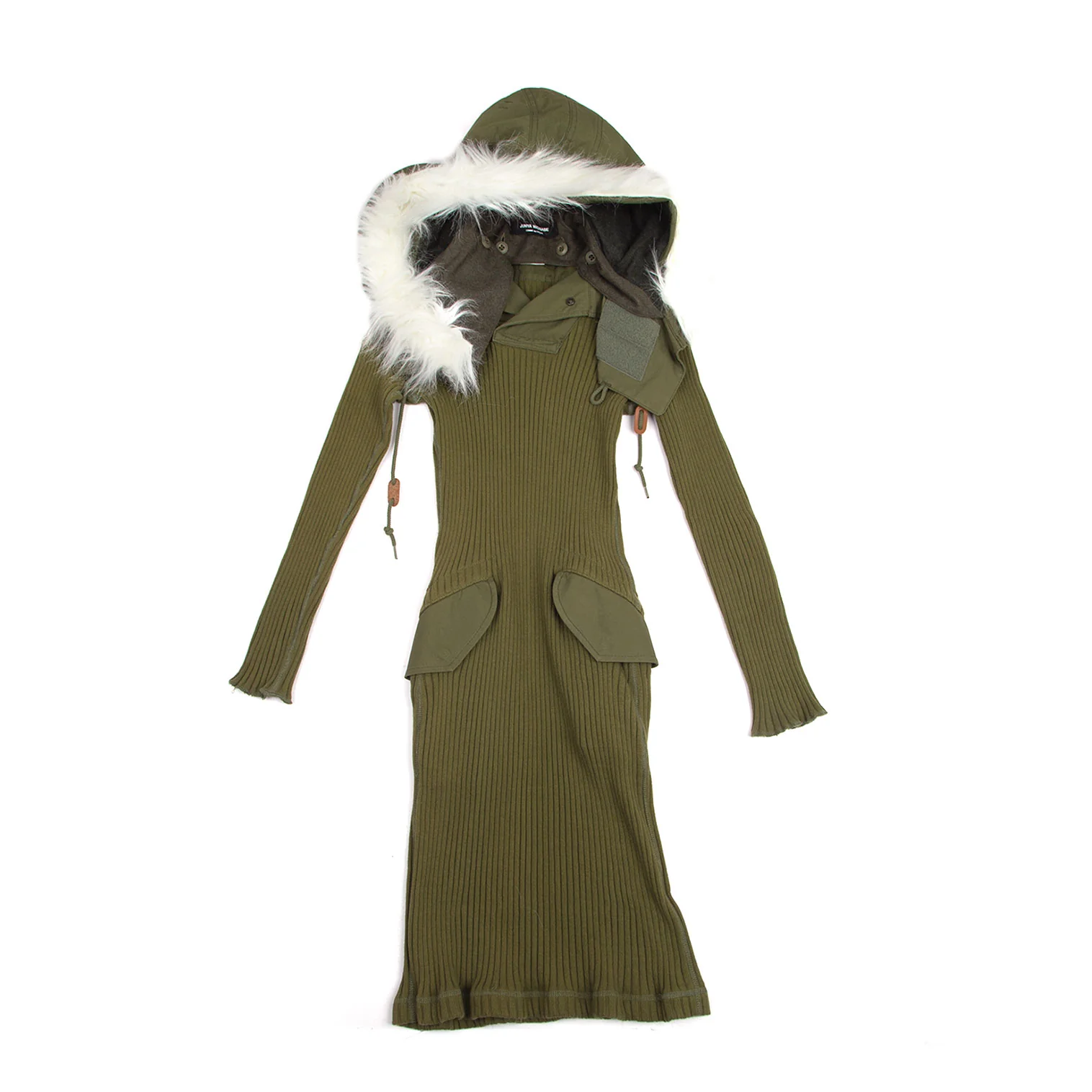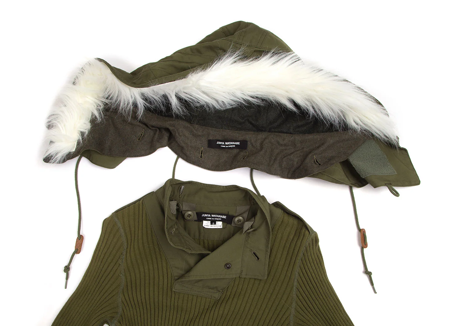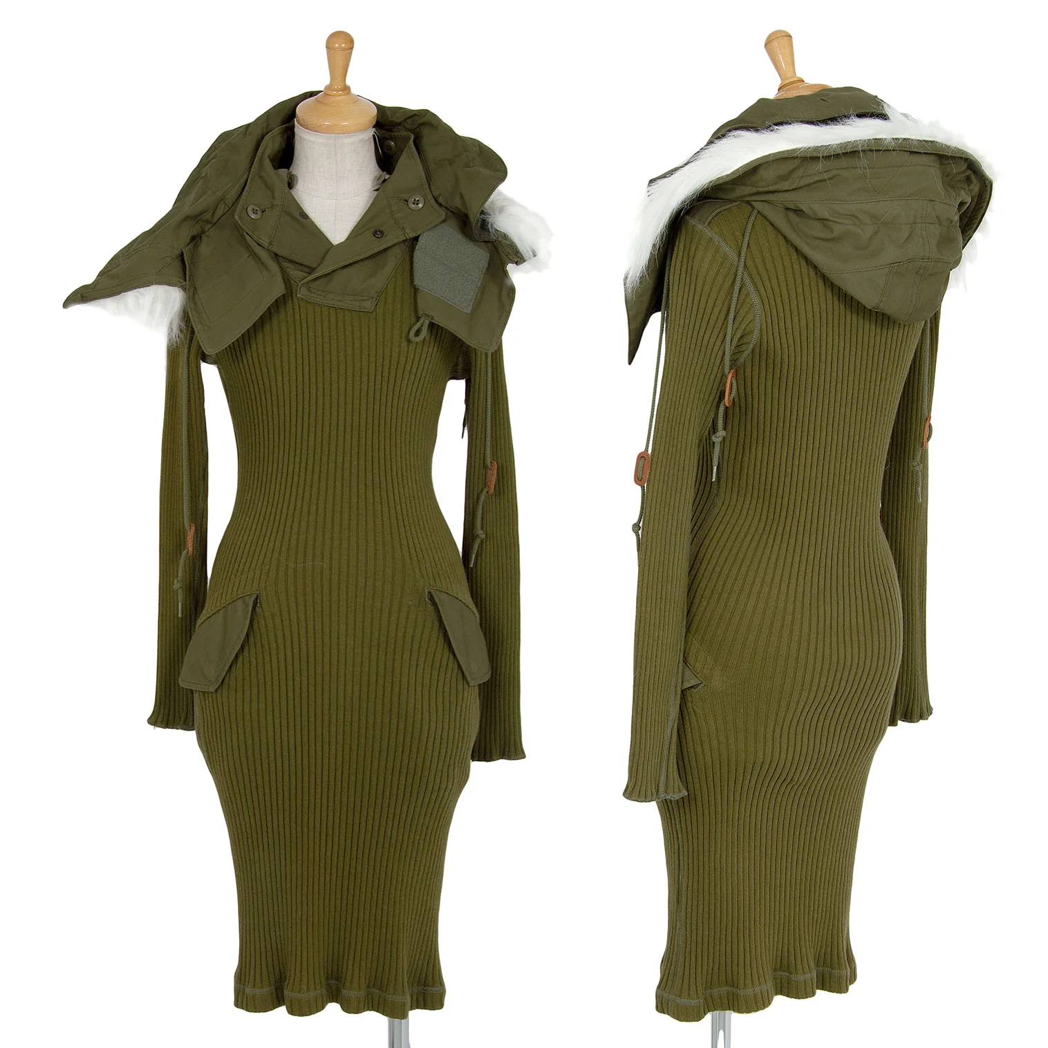 ジュンヤワタナベ コムデギャルソンJUNYA WATANABE COMME des GARCONS ファーフード付きコマンドニットワンピース カーキS