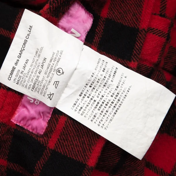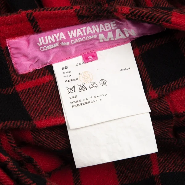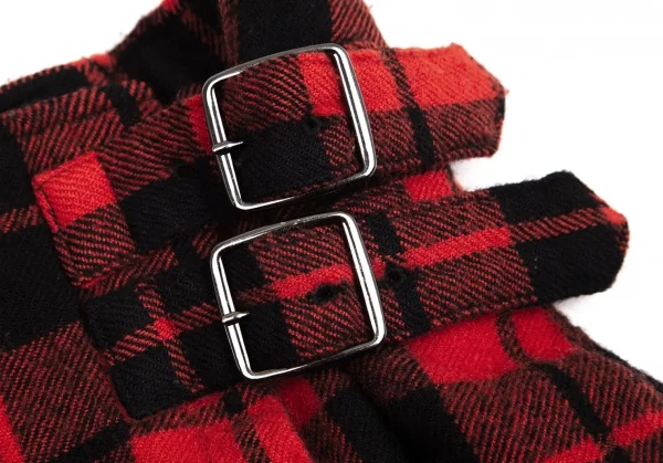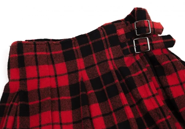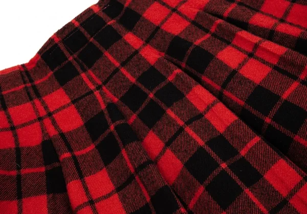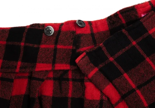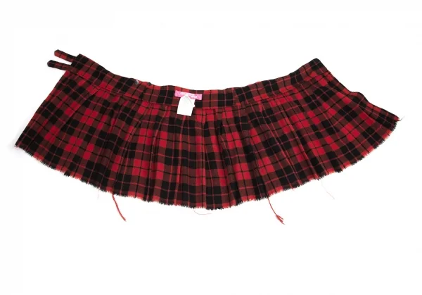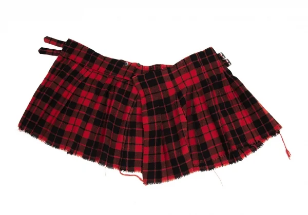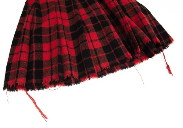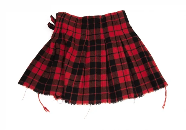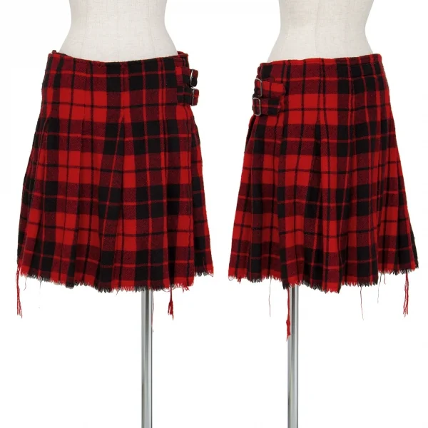 ジュンヤワタナベマンピンク コムデギャルソンJUNYA WATANABE MAN PINK COMME des GARCONS 縮絨タータンチェック裁ち切りプリーツラップスカート 赤黒S