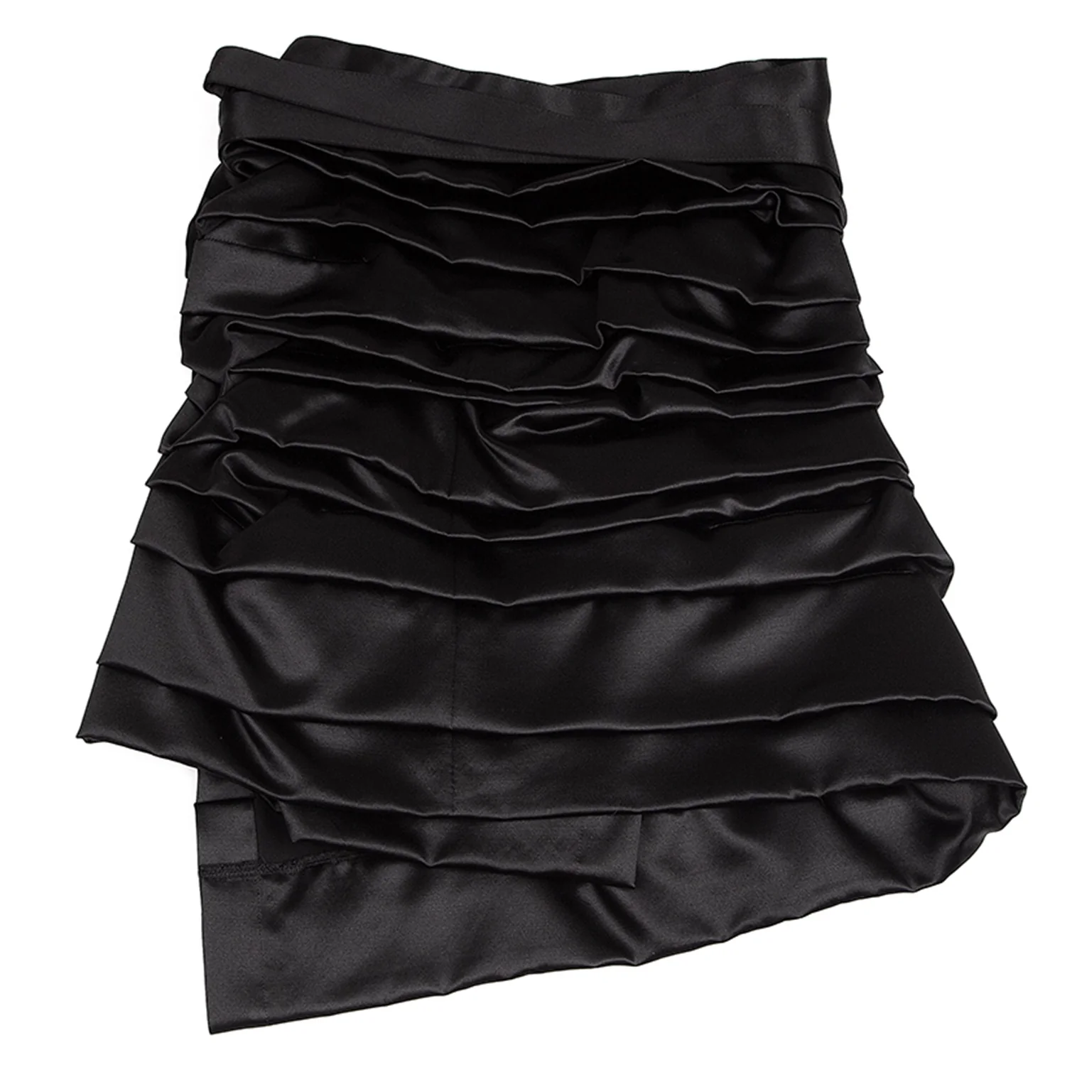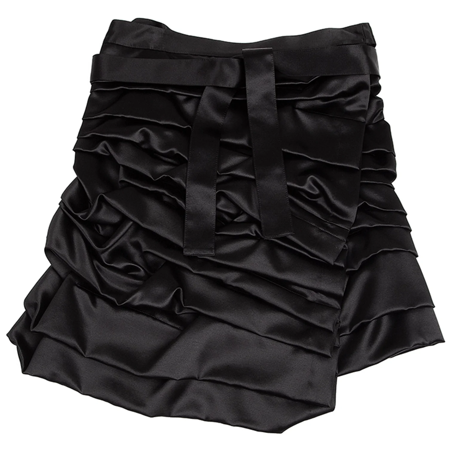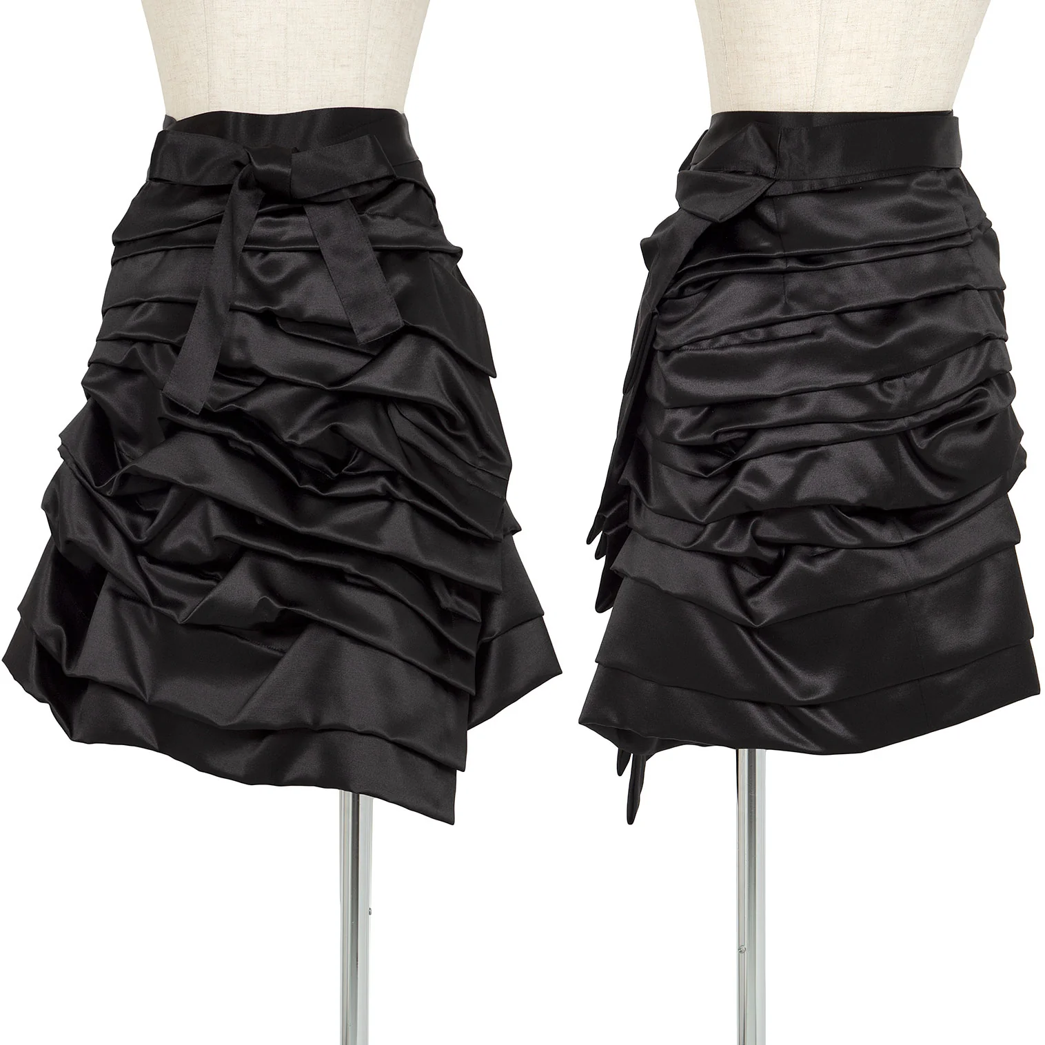 コムデギャルソンCOMME des GARCONS シルクウールサテンティアードギャザーラップスカート 黒S