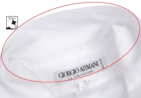 品質表記の印字が消えています。若干透け感があります。襟裏・前裾に薄汚れがあります(画像参照)。その他目立ったシミ、汚れ、ほつれ等ありません。クリーニング済み