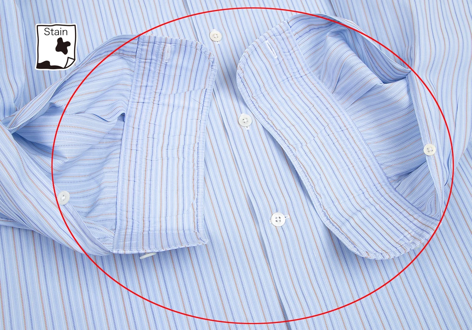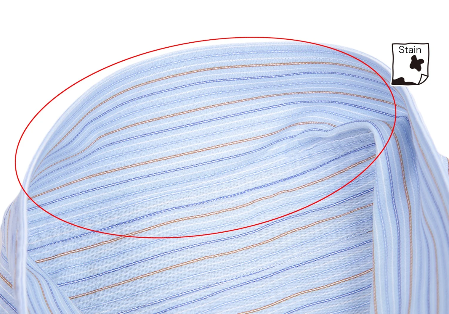 襟裏に薄シミ、袖裏に薄汚れがあります(画像参照)。その他目立ったシミ、汚れ、ほつれ等ありません。クリーニング済み
