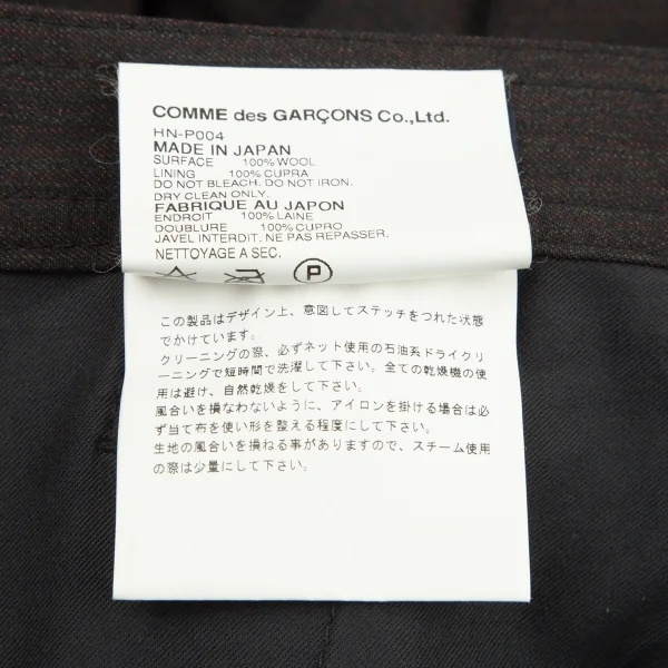 コムデギャルソン オムCOMME des GARCONS HOMME 裏ストライプパッカリングウールパンツ ダークブラウンL