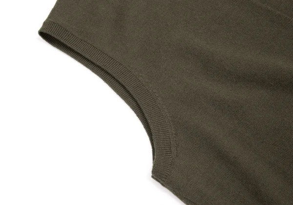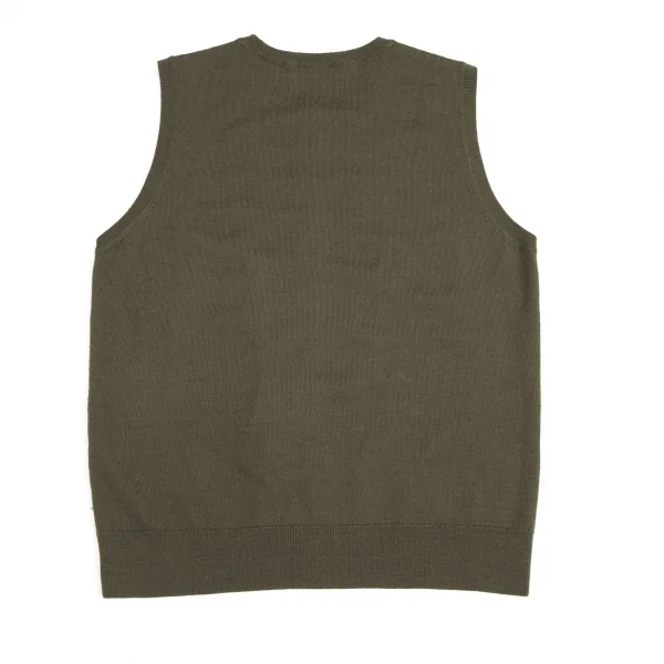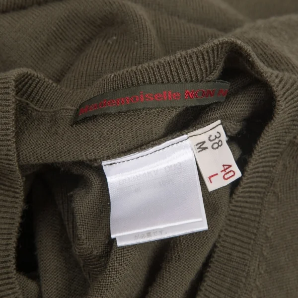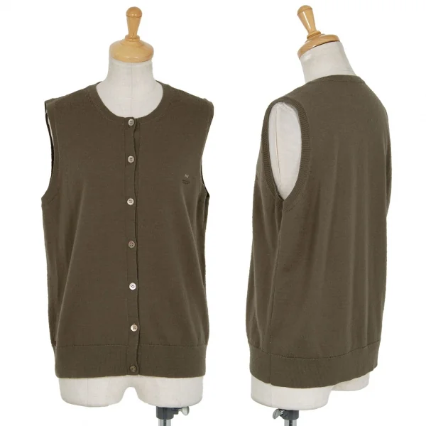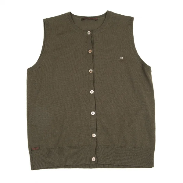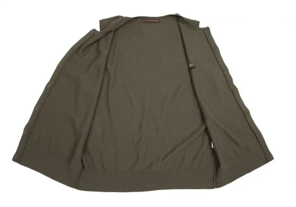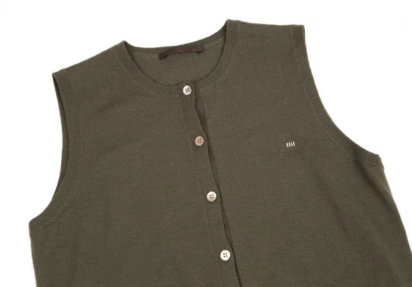 マドモアゼルノンノンMademoiselle NON NON クルーネックニットカーディガンベスト カーキ40L