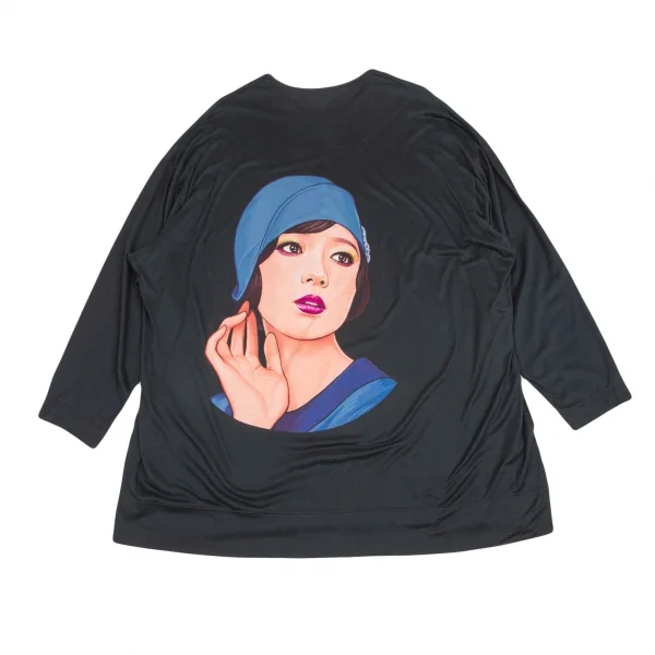 ヨウジヤマモト プールオムYohji Yamamoto POUR HOMME サイトウユウスケ バックモダンガールプリントビッグシルエットヘンリーネックカットソー チャコール3