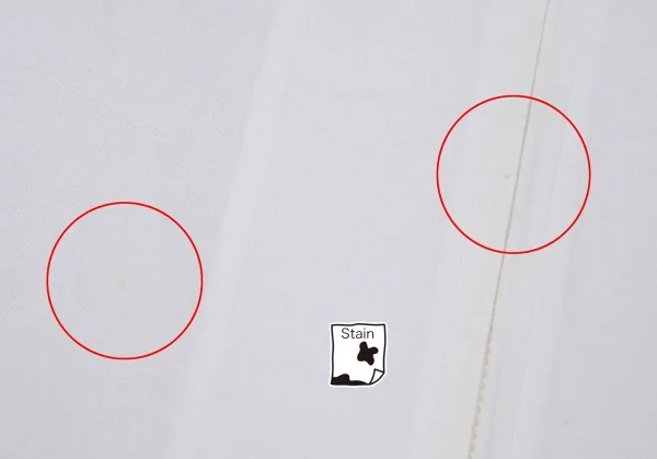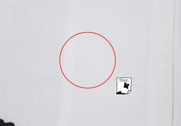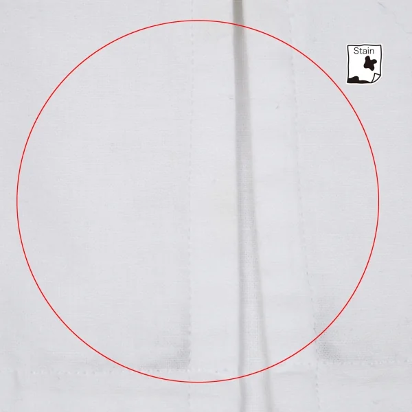 若干の透け感があります。品質表示タグに劣化・印字が消えています。胸元に点シミ、前裾に点シミ・薄シミがあります(写真参照)。その他に目立ったシミ、汚れ、ほつれ等ありません。クリーニング済み