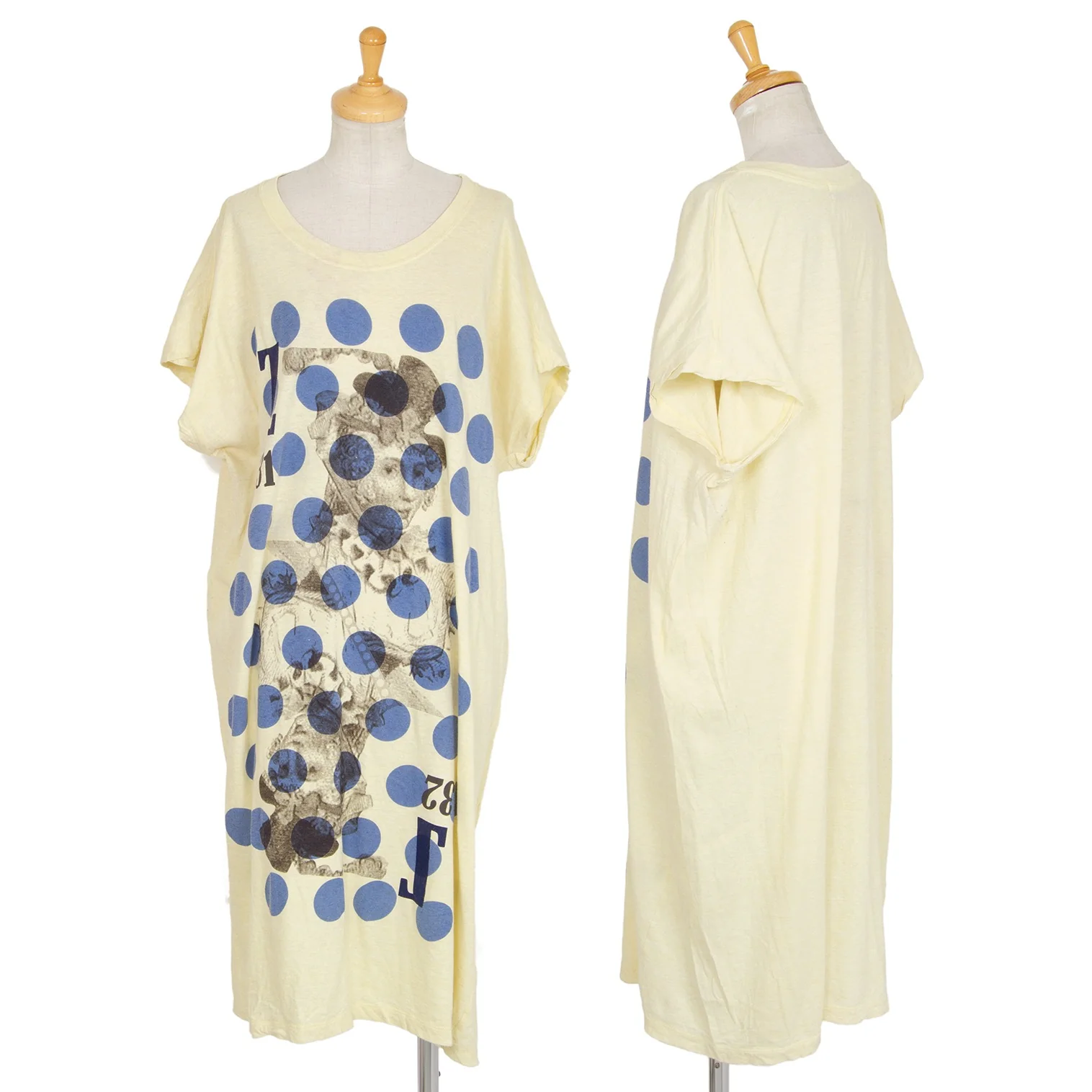 ズッカzucca ドットグラフィックプリントビッグシルエットTシャツワンピース パステルイエローM