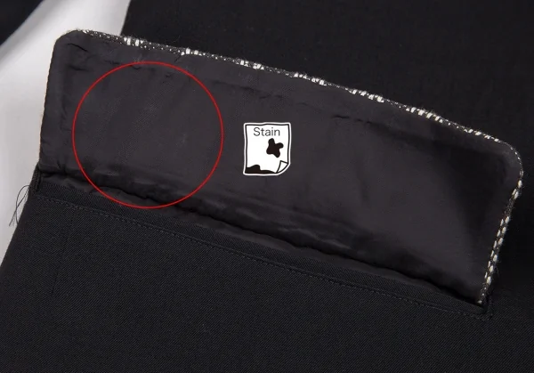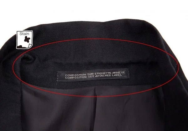 1995S/S。所々に生地浮きがあり、襟裏・ポケット裏に薄汚れ、ポケット口に変色があります(画像参照)。その他目立ったシミ、汚れ、ほつれ等ありません。クリーニング済み