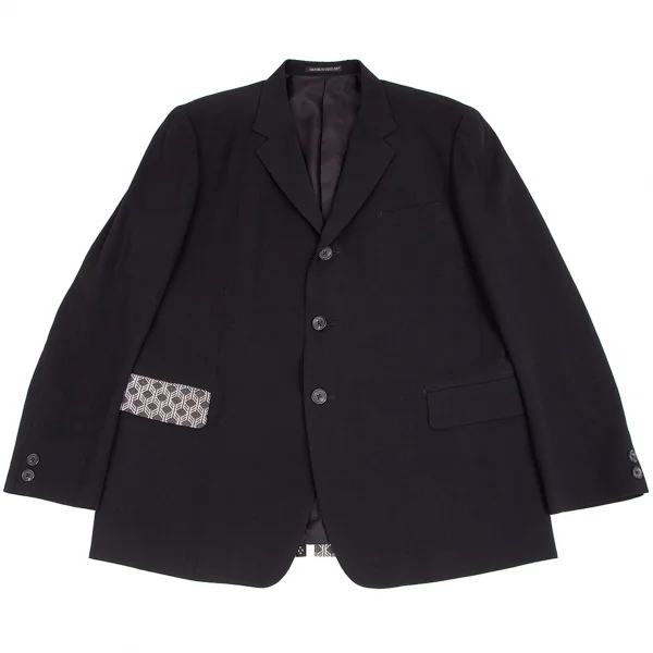 ヨウジヤマモト プールオムYohji Yamamoto POUR HOMMEバックジャパニーズファブリック貼り付けデザインジャケット 黒M