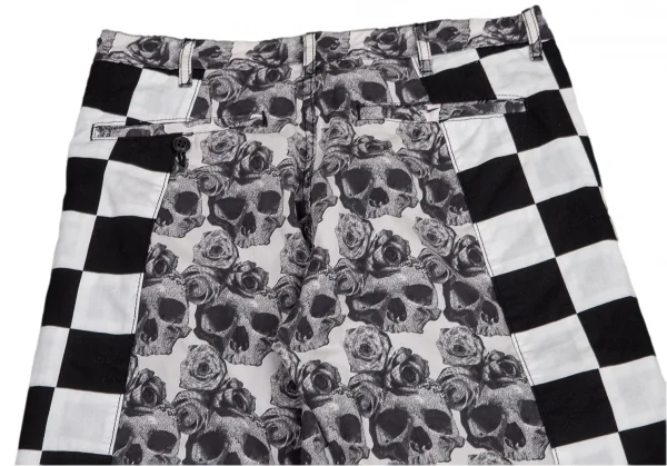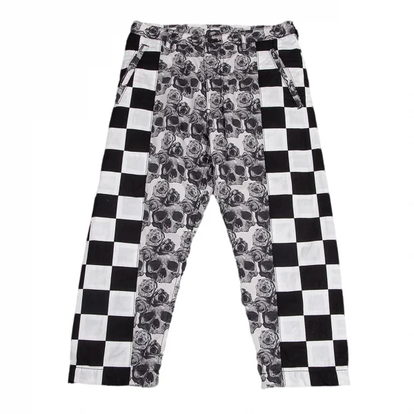 コムデギャルソン オムプリュスCOMME des GARCONS HOMME PLUS チェック切替スカルサルエルパンツ 白黒XS