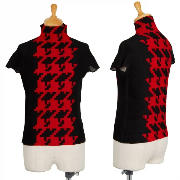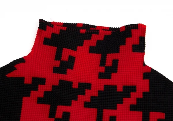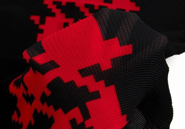イッセイミヤケISSEY MIYAKE PLEATS(T.) プリントブロックプリーツカットソー 黒赤3