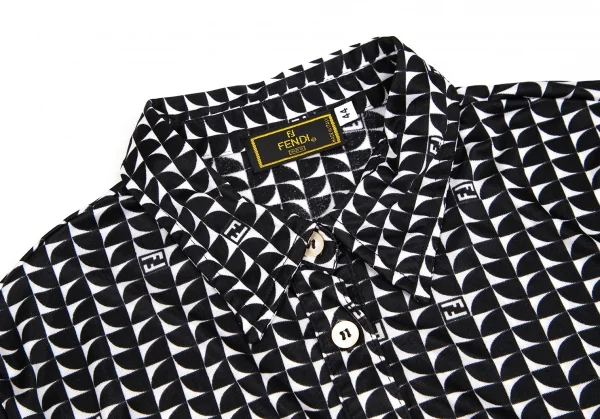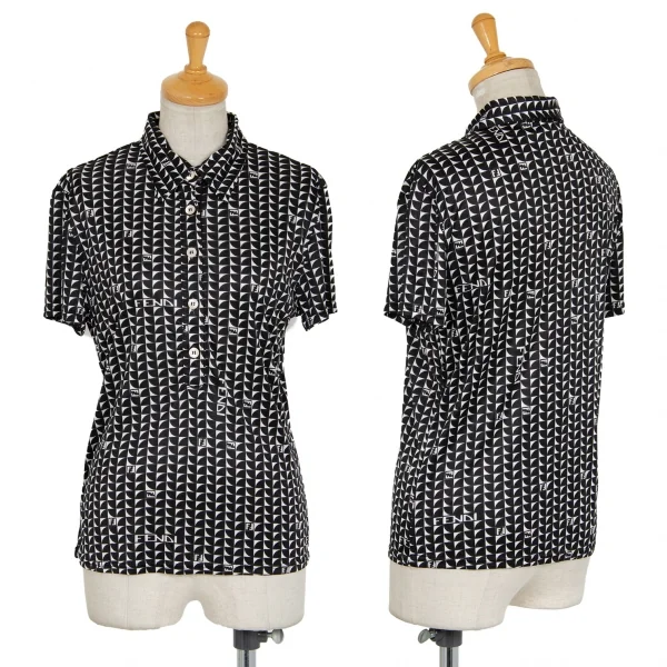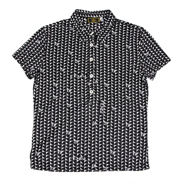 フェンディFENDI ジオメトリックナイロンポロシャツ 黒白44