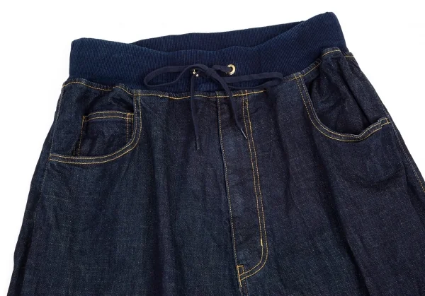 メルシーボークーmercibeaucoup リブ切替デニムサルエルパンツ インディゴ1