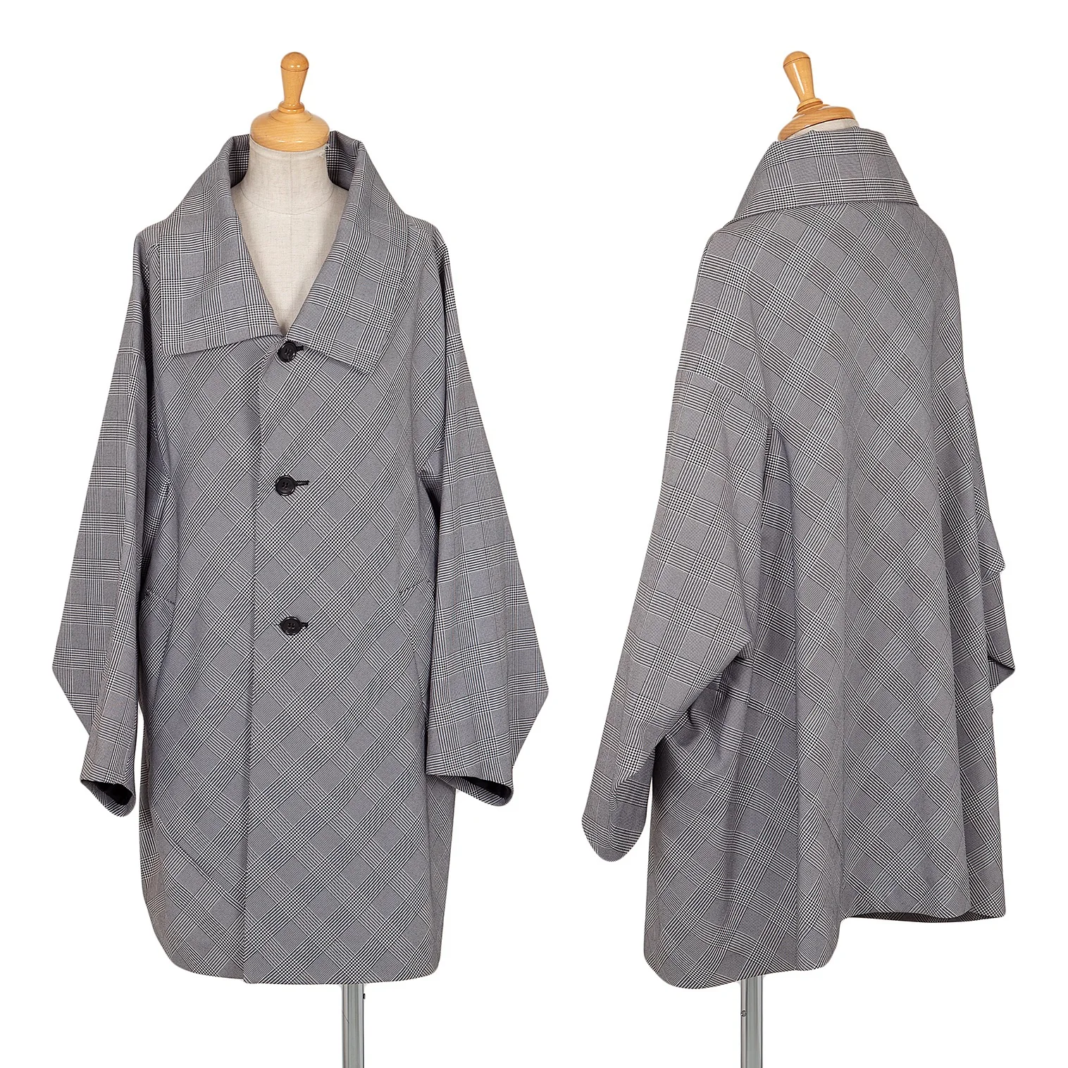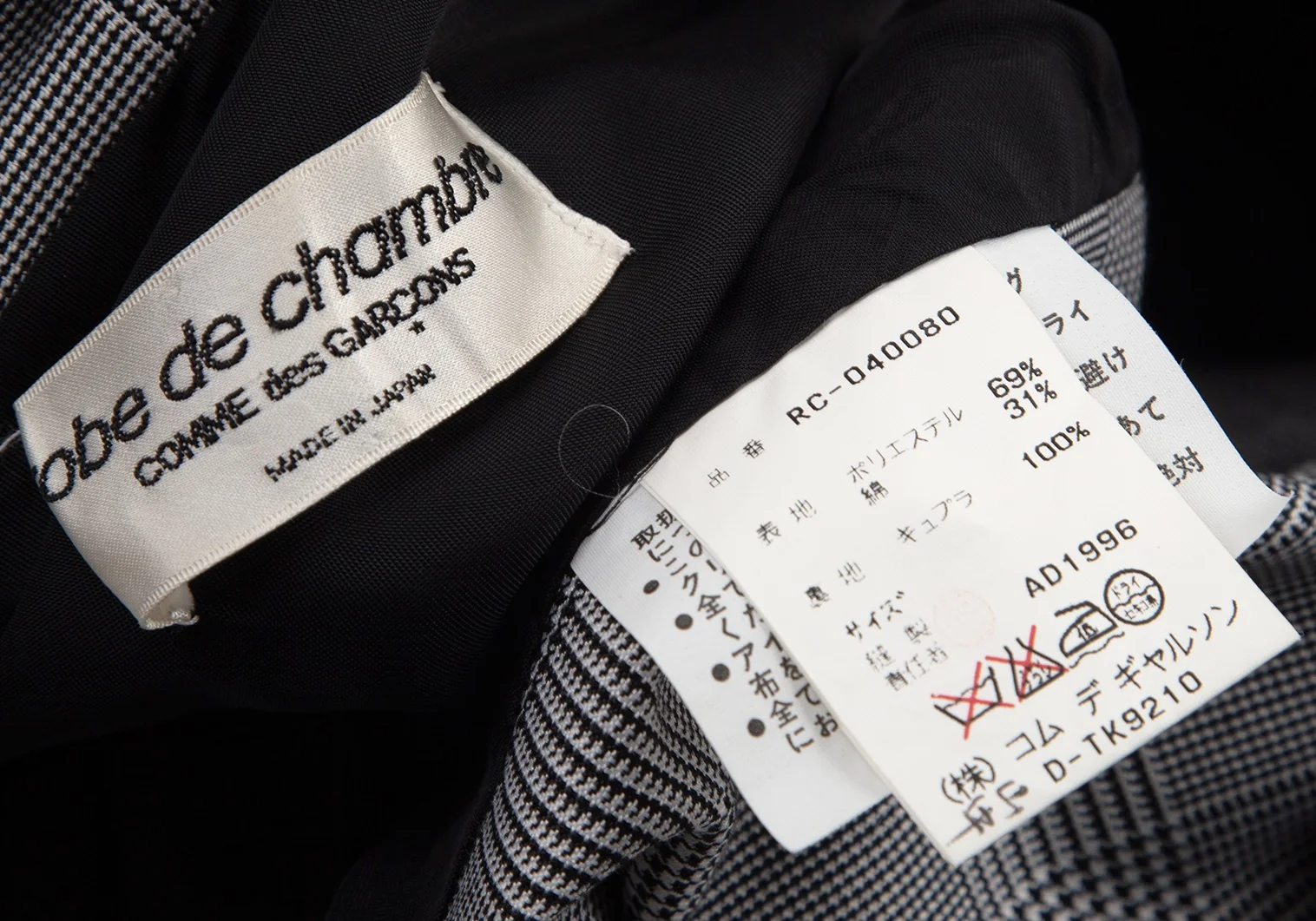 ローブドシャンブル コムデギャルソンrobe de chambre COMME des GARCONS 変形バイアスグレンチェックコート 白黒M位