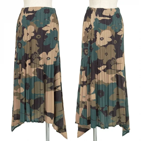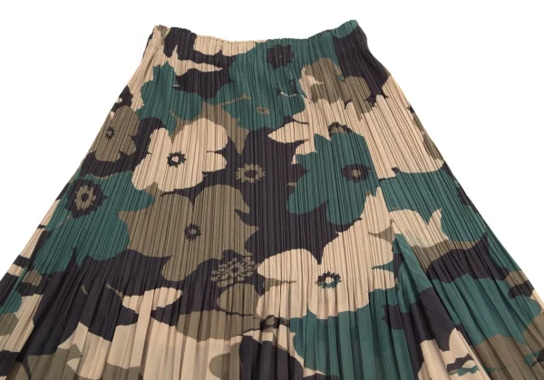 イッセイミヤケ ホワイトレーベルISSEY MIYAKE WHITE LABEL フラワーカモプリント消しプリーツスカート 緑黒他2