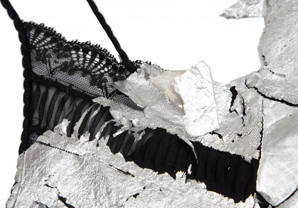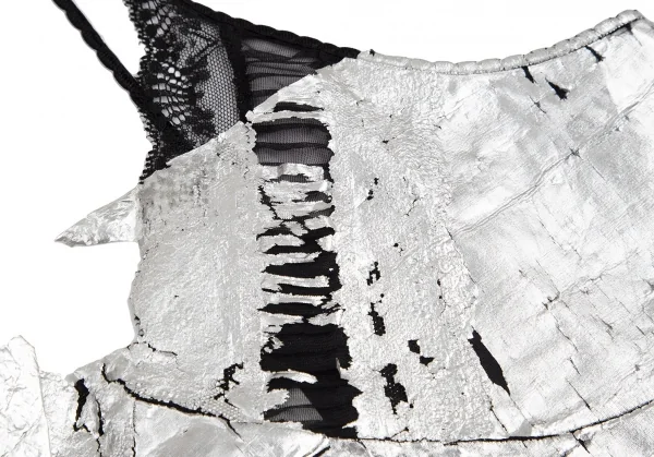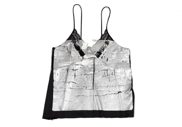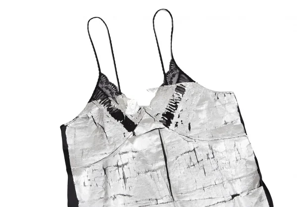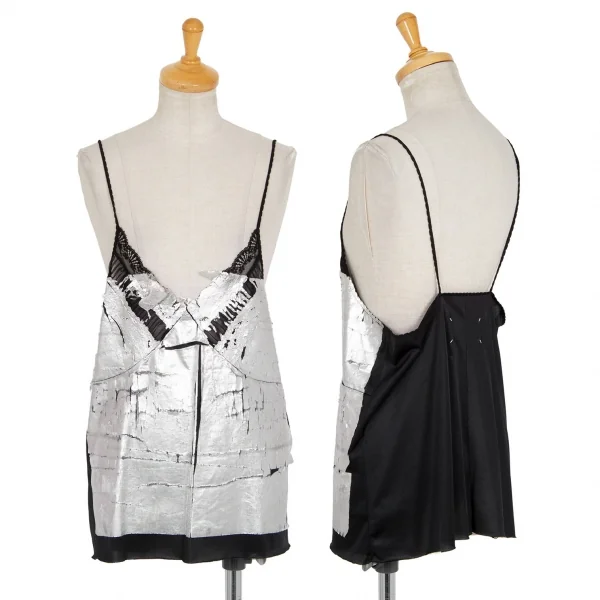 メゾンマルタンマルジェラMaison Martin Margiela 0 アーティザナル箔プリントキャミソール 黒シルバー1