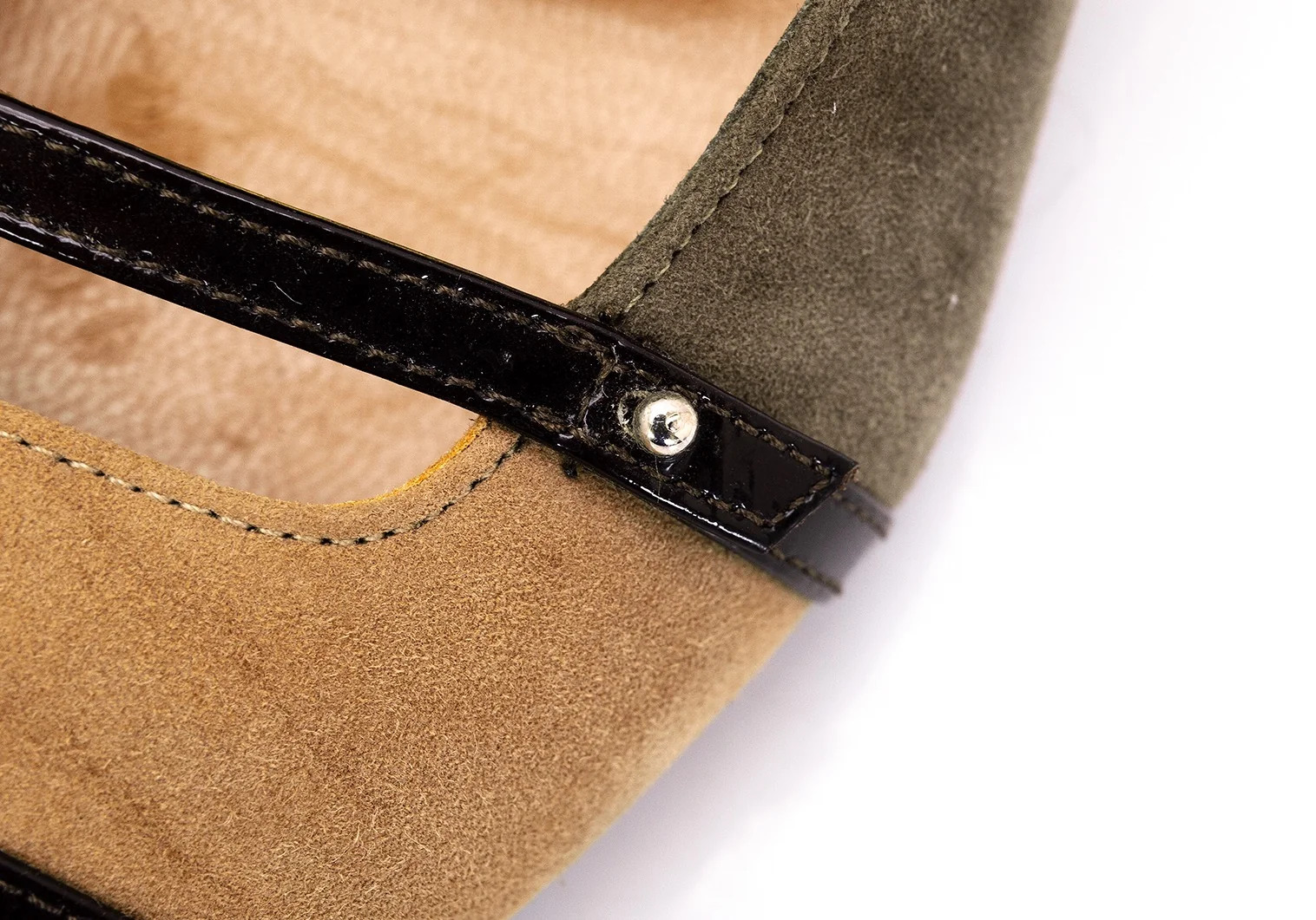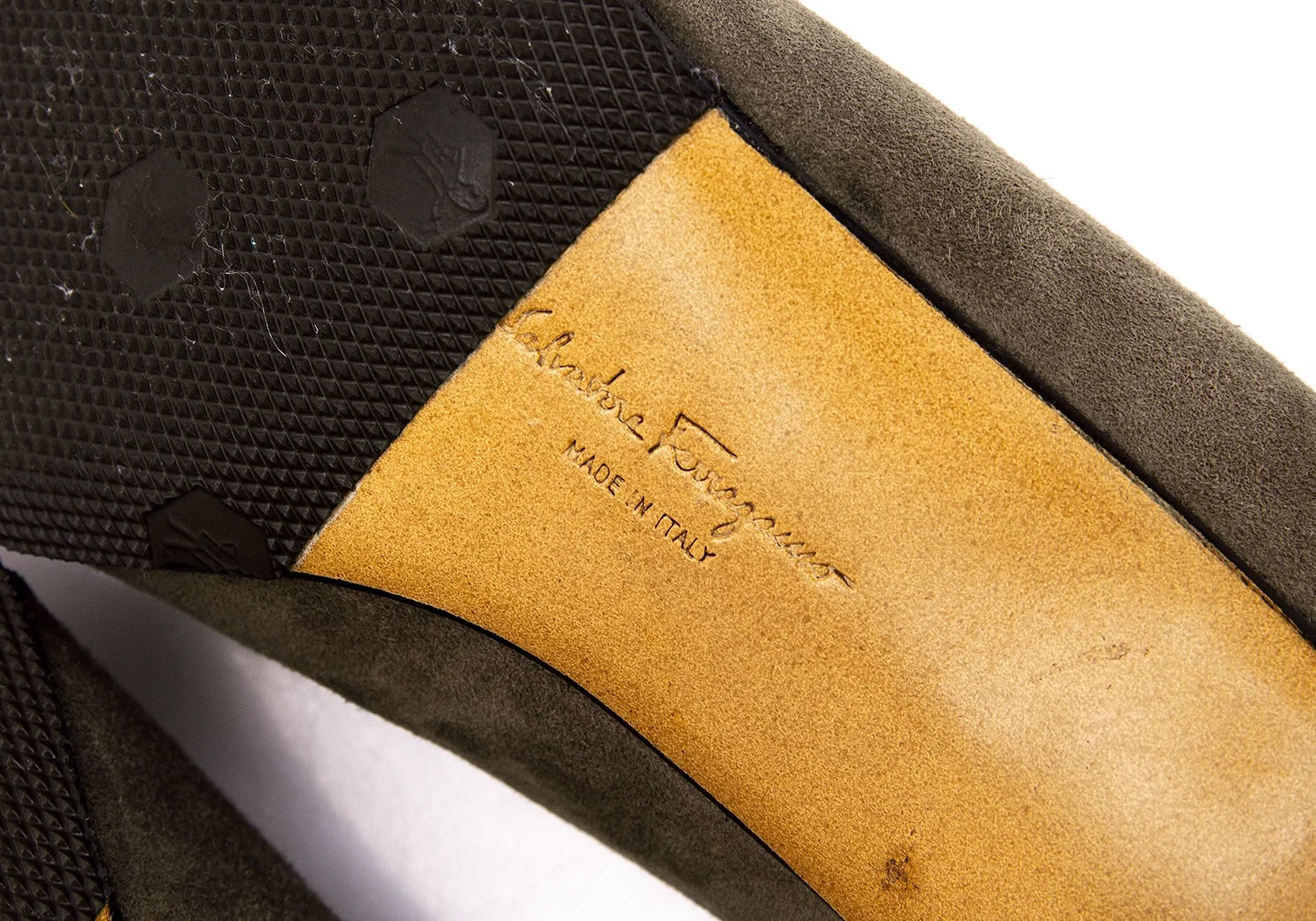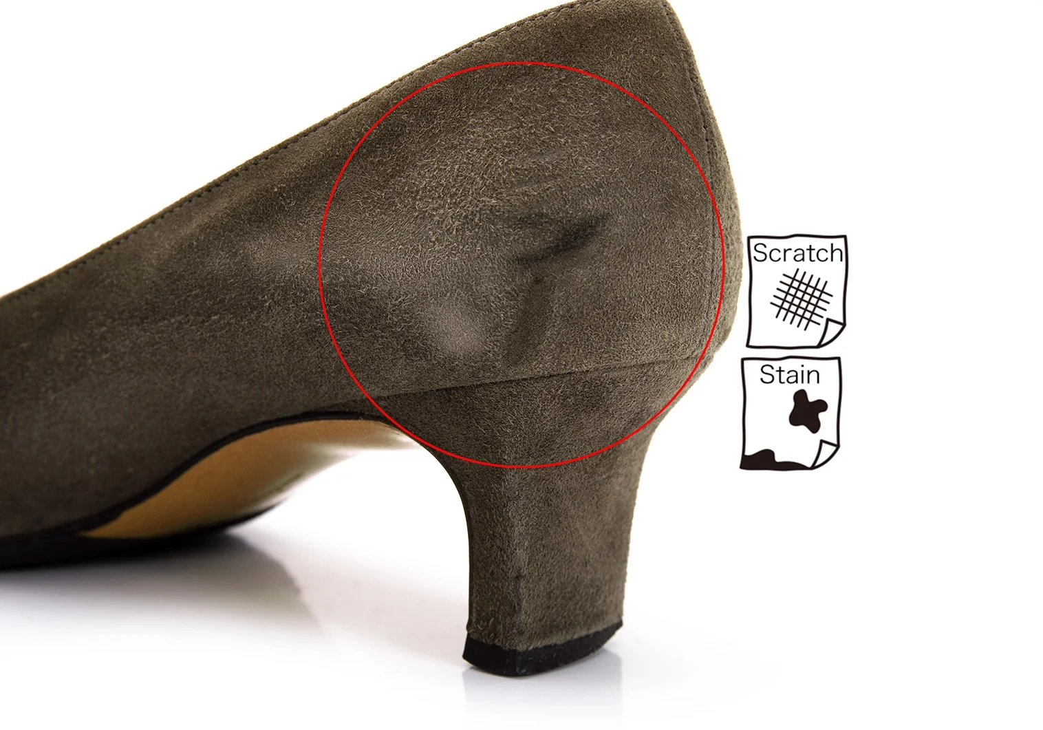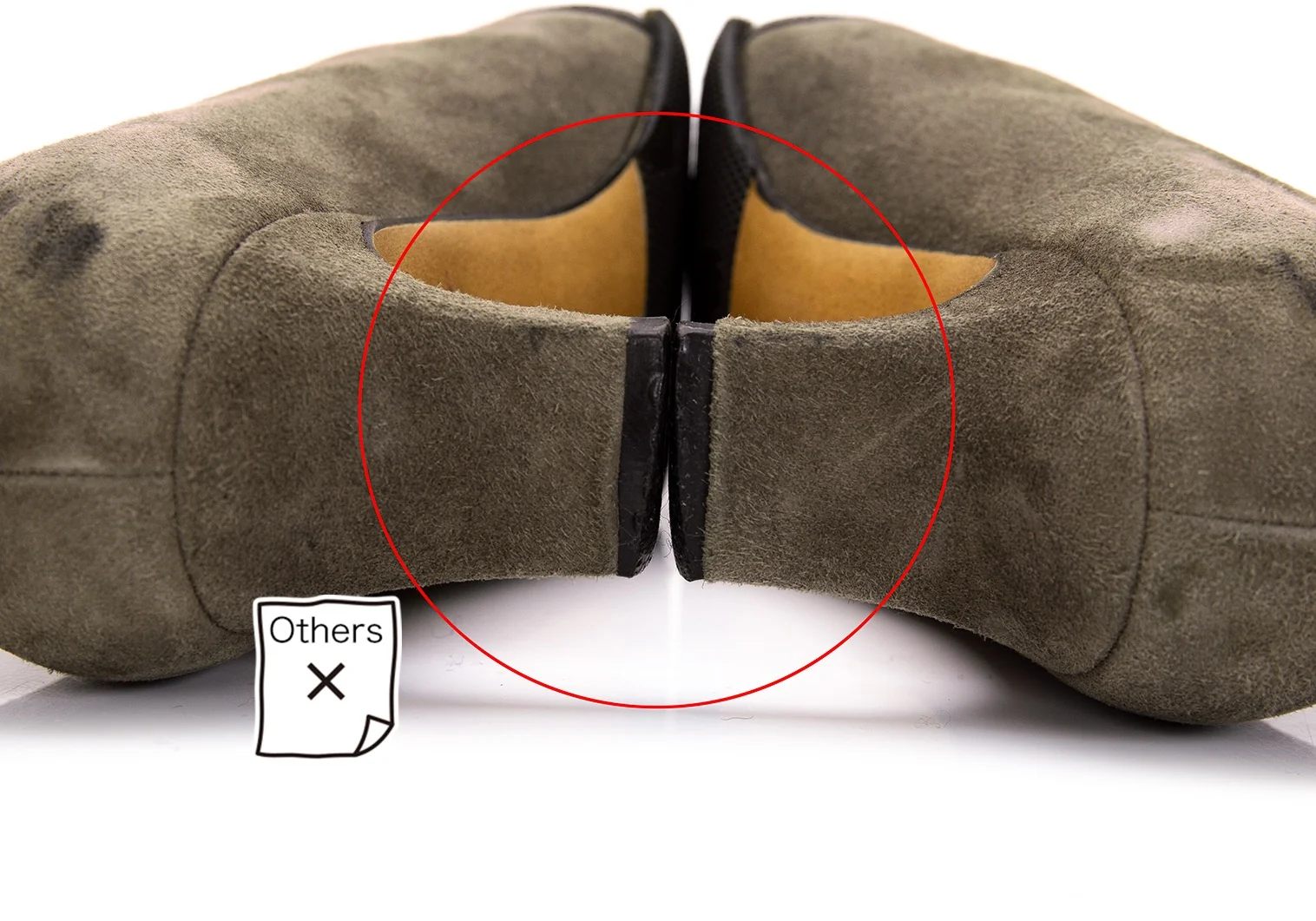 つま先にスレ、かかとに減り・スレ・汚れがあります(写真参照)。全体的にまだまだお使いいただけるお品です。