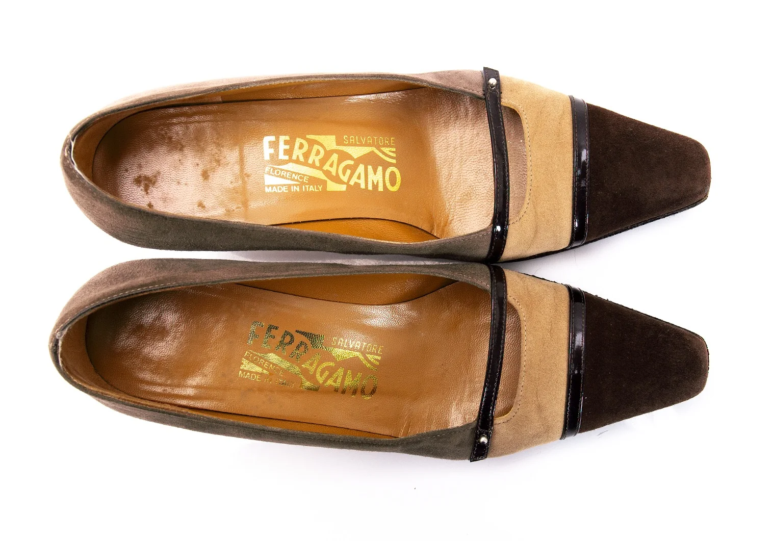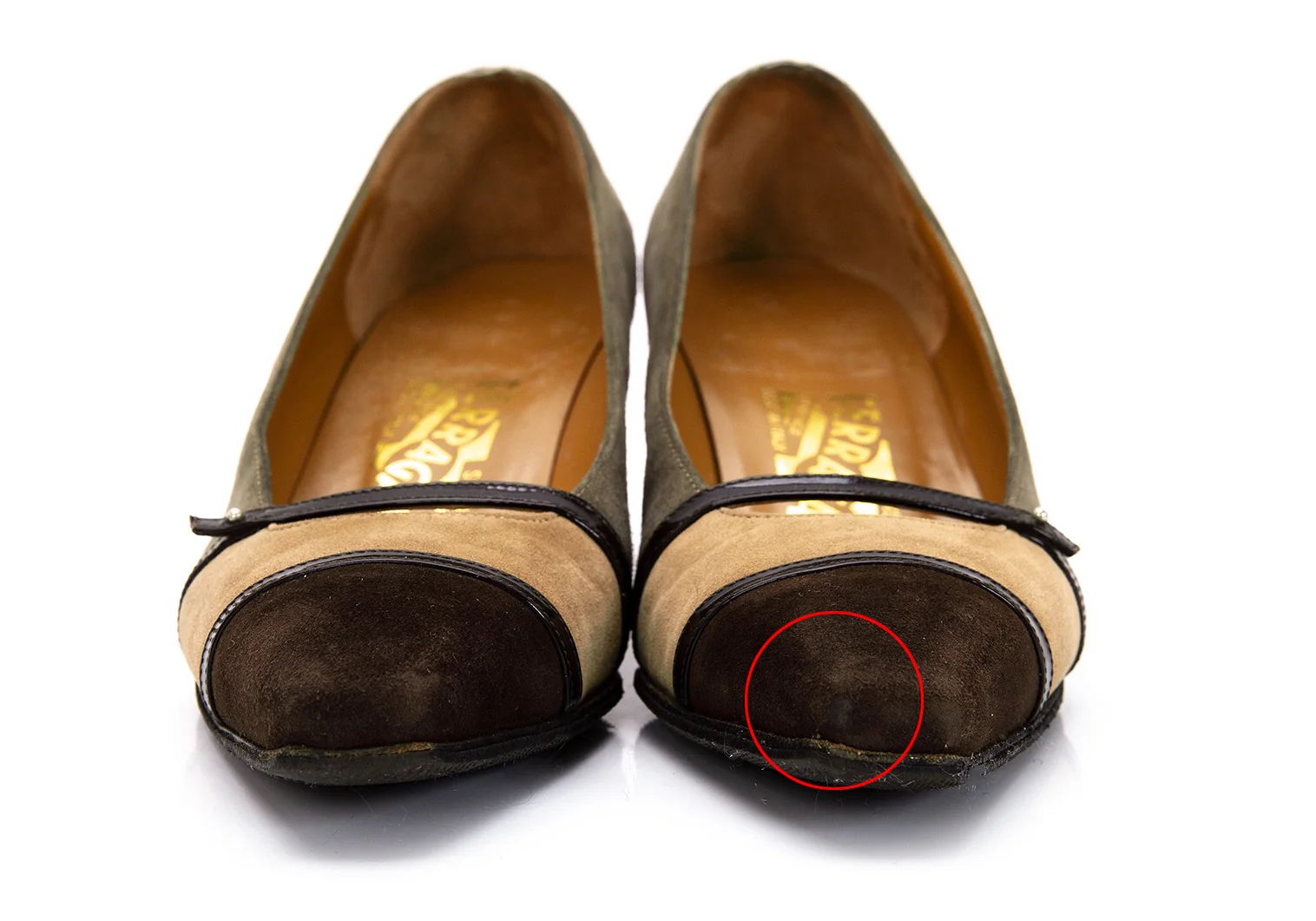 サルバトーレフェラガモSalvatoreFerragamo スウェードトリカラー切替パンプス グレーベージュ茶5(22位)