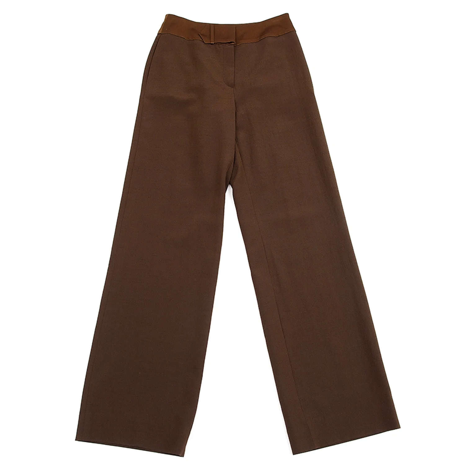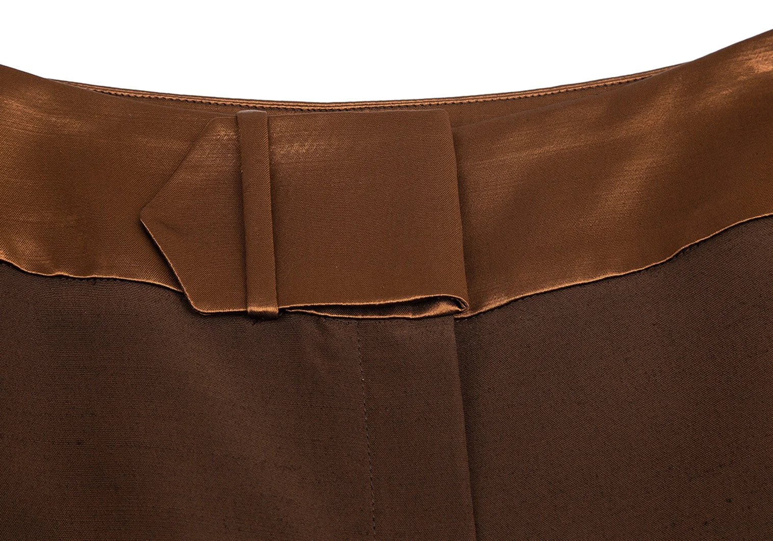 サルヴァトーレフェラガモ Salvatore Ferragamo サテン切替スラックス 茶40