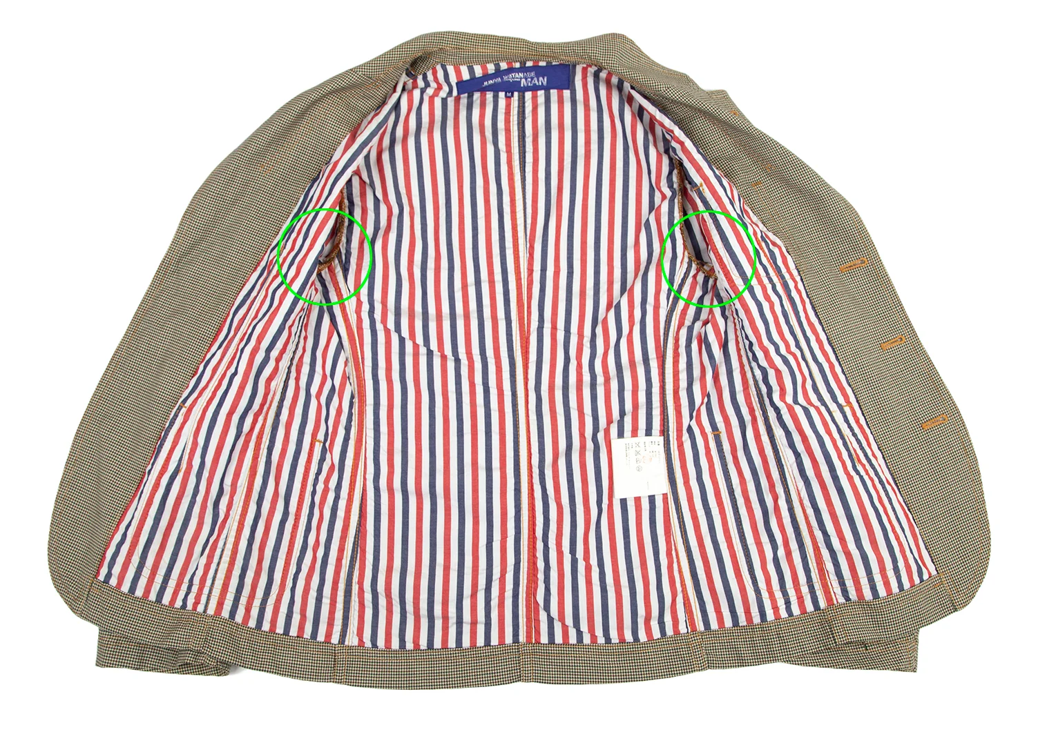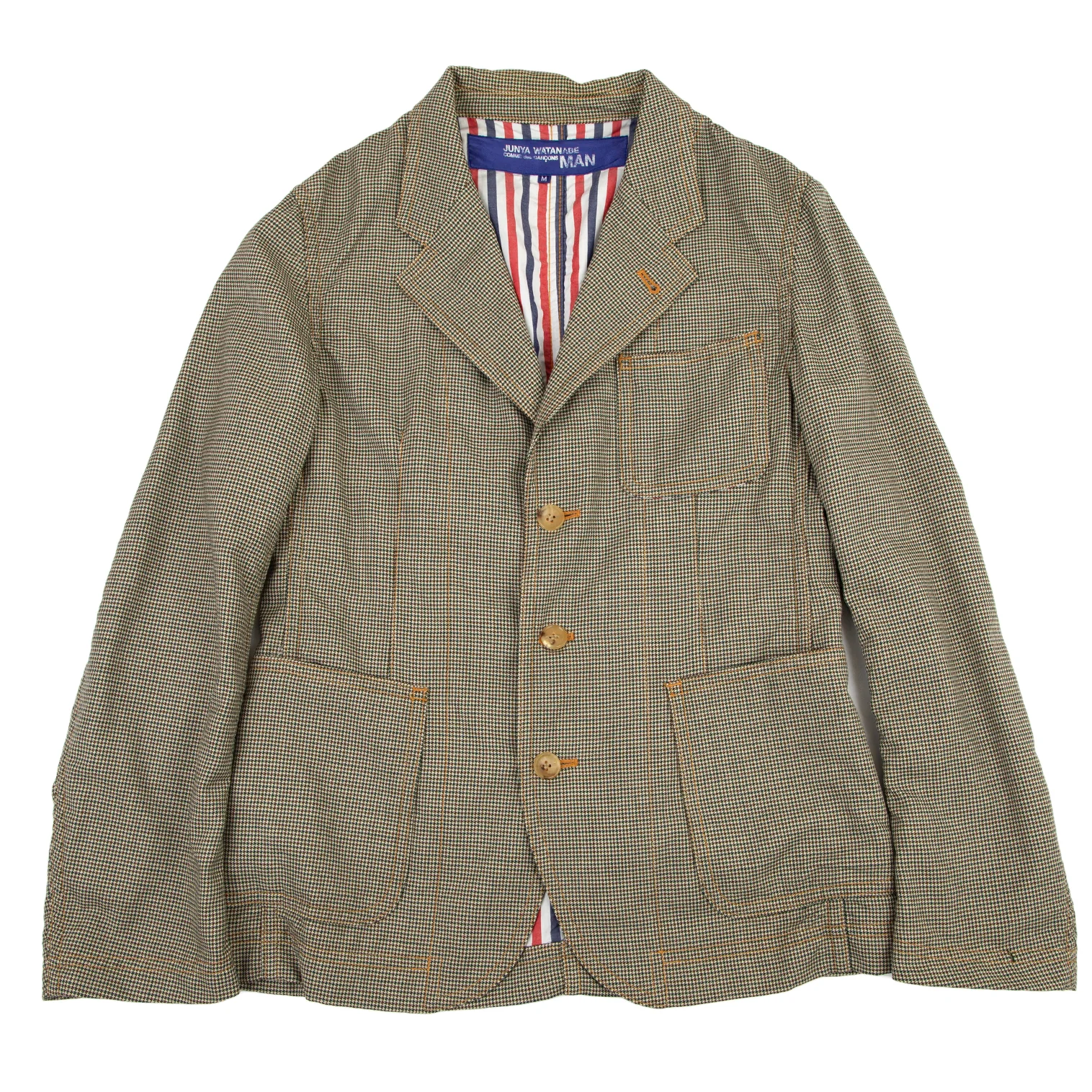 ジュンヤワタナベマン コムデギャルソンJUNYA WATANABE MAN COMME des GARCONS千鳥柄パッチポケットウールジャケット 茶緑ベージュM