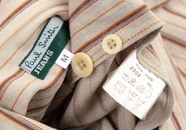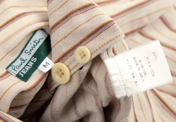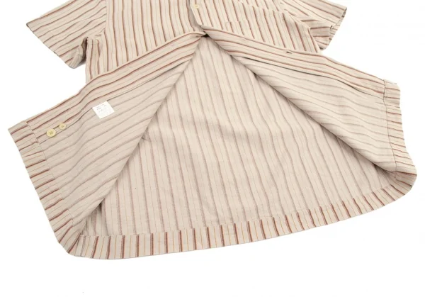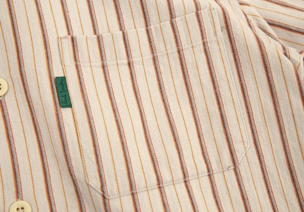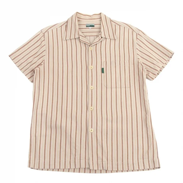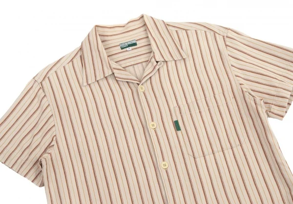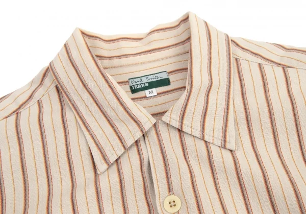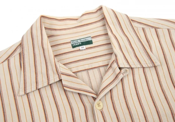 ポールスミス ジーンズPaul Smith JEANS ストライプ織りオープンカラー半袖シャツ ベージュ他M