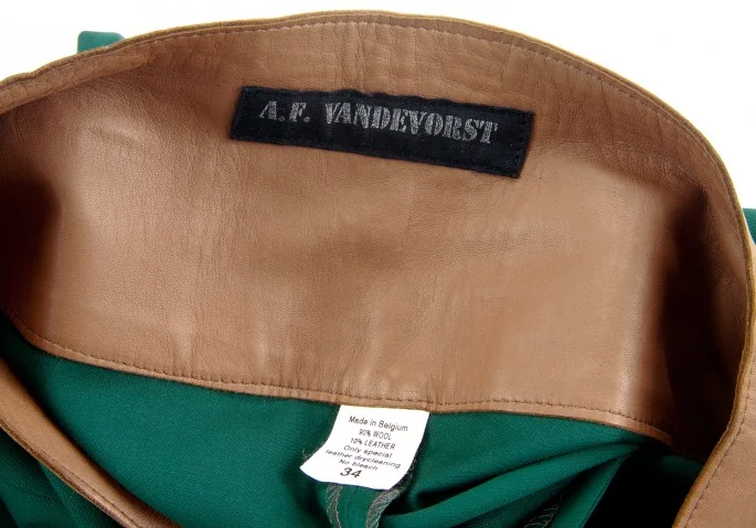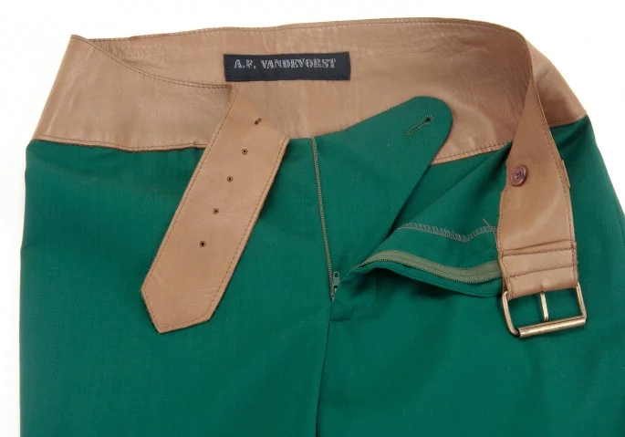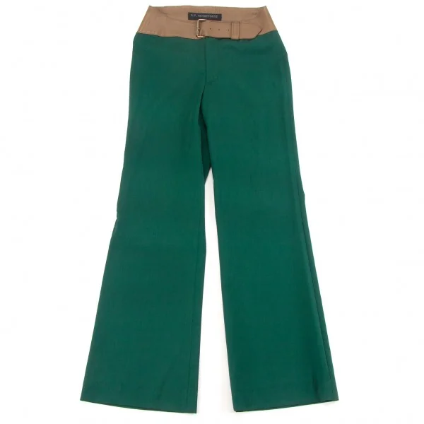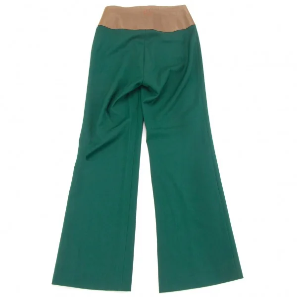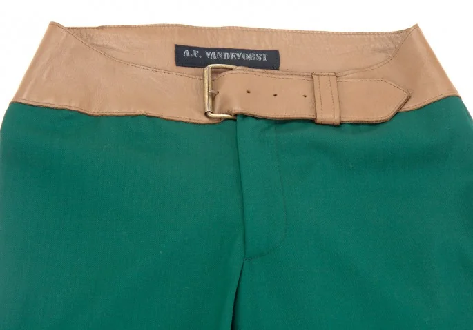 A.F.ヴァンデヴォーストA.F.VANDEVORST レザー切替フレアパンツ エメラルドグリーン34