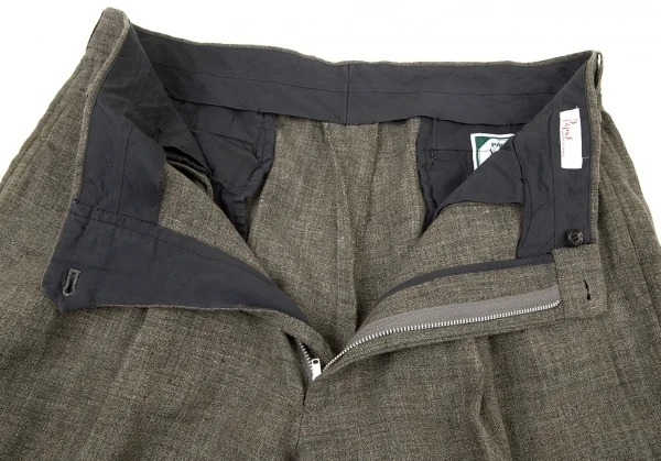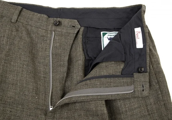 パパスPapas リネンツータックパンツ カーキLL