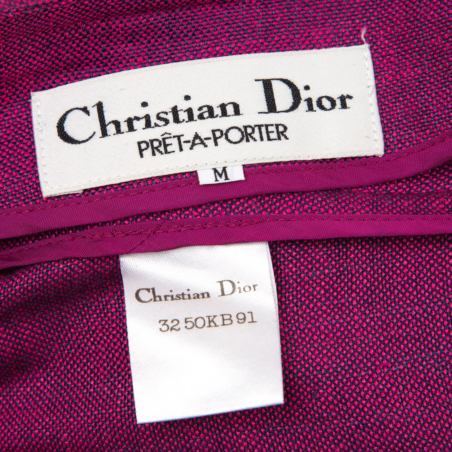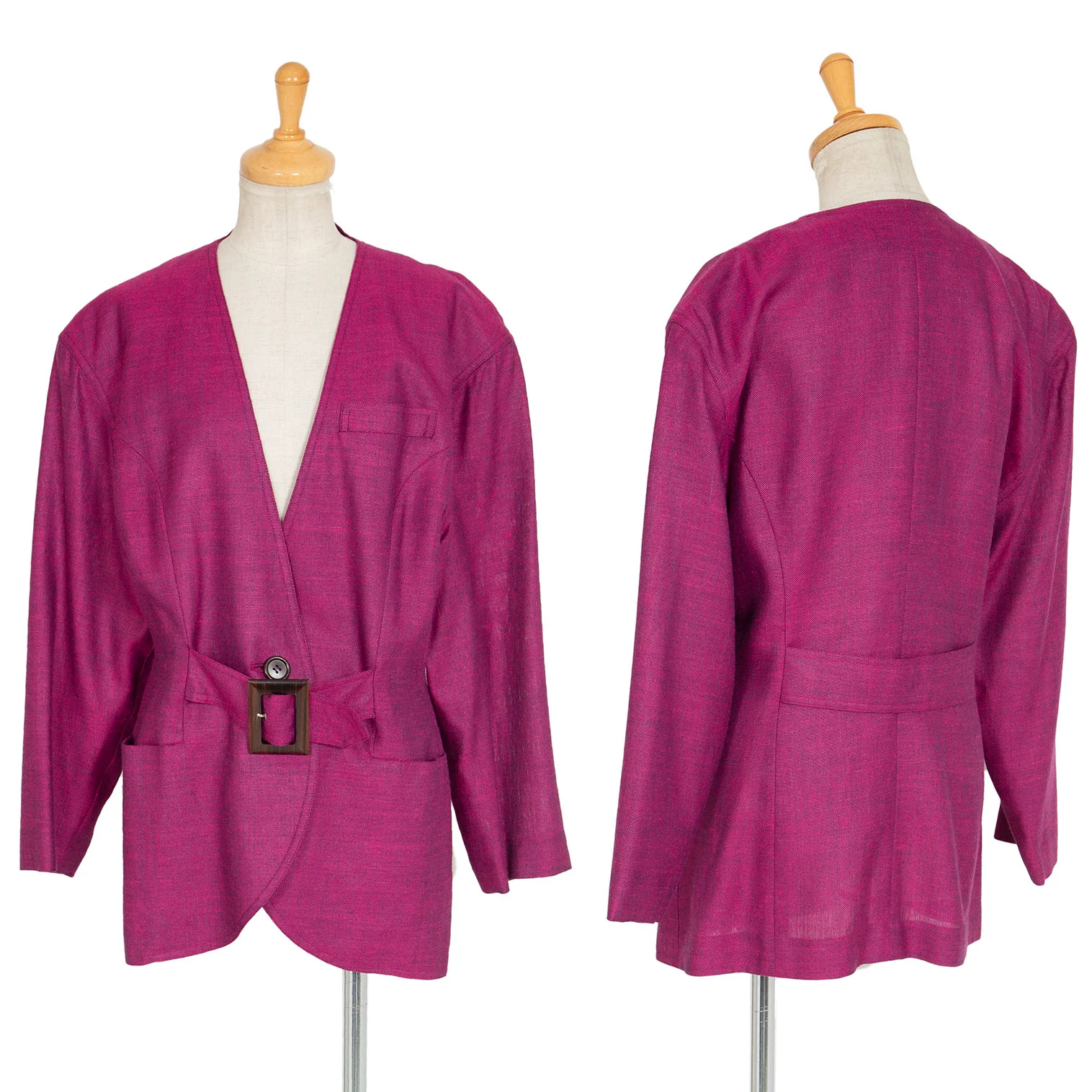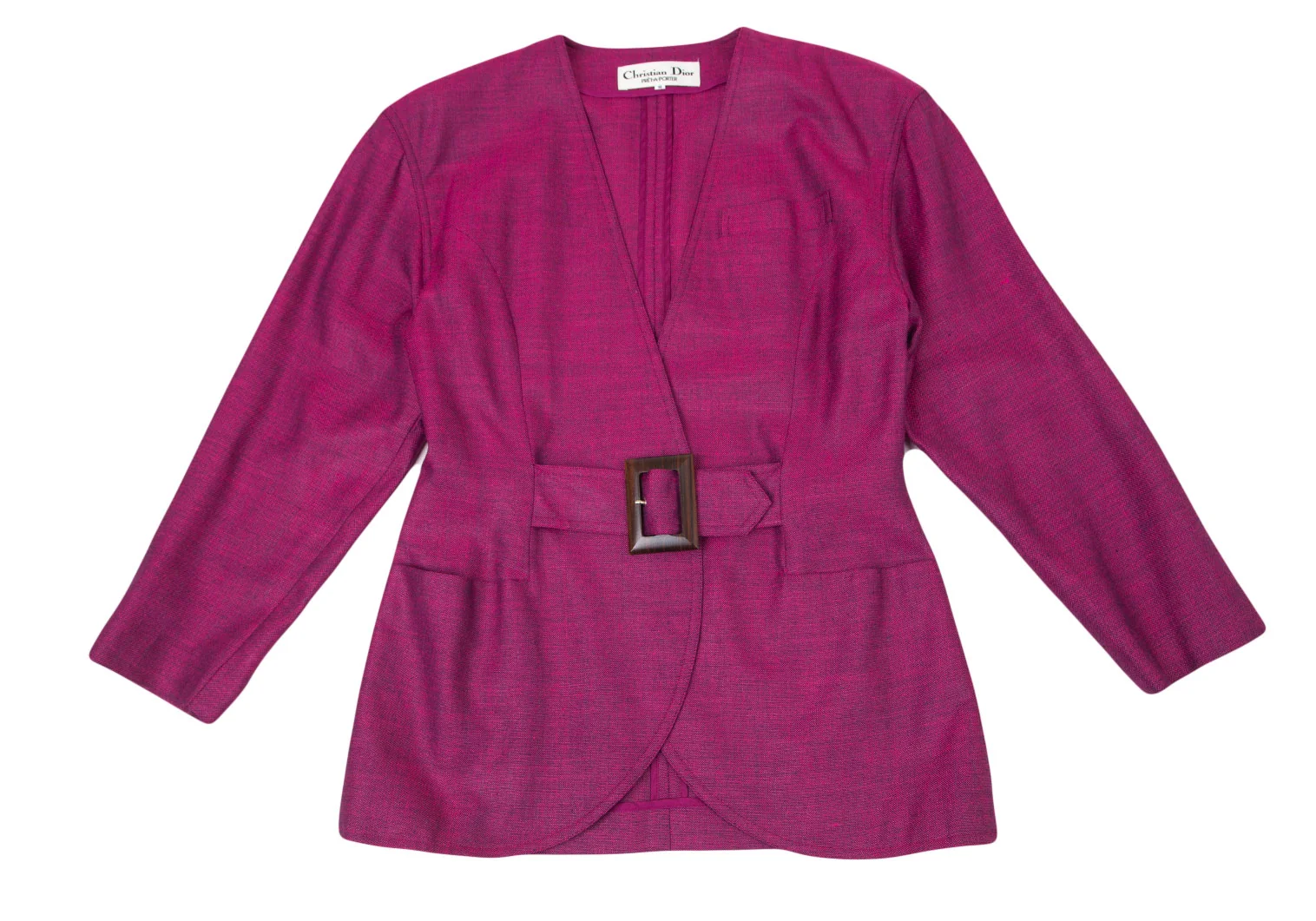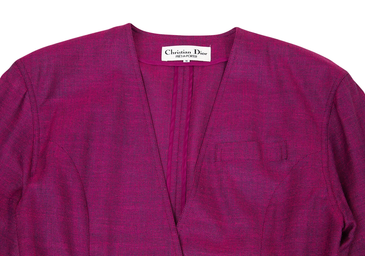 クリスチャンディオールChristian Dior ベルテッドノーカラージャケット ピンクM