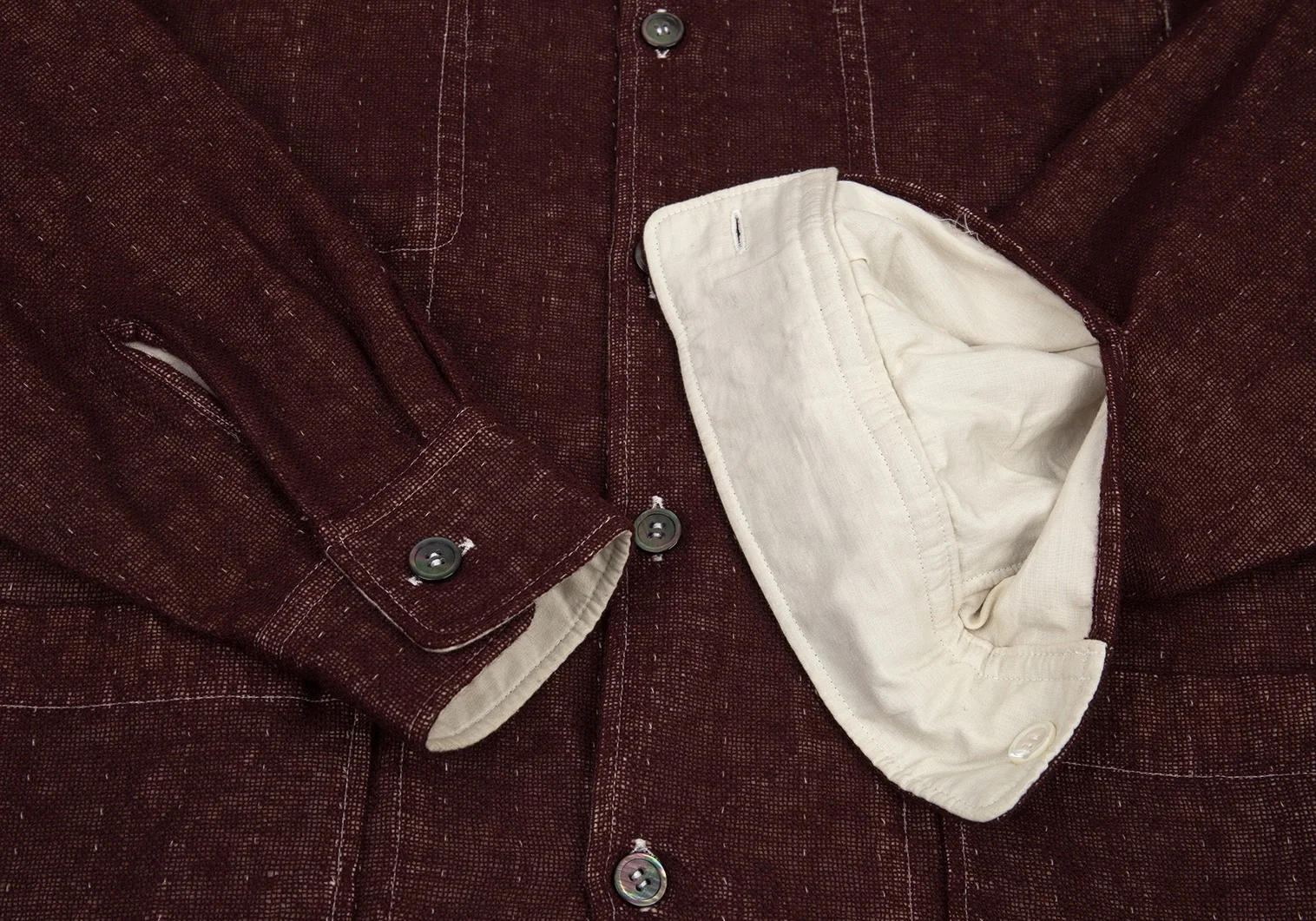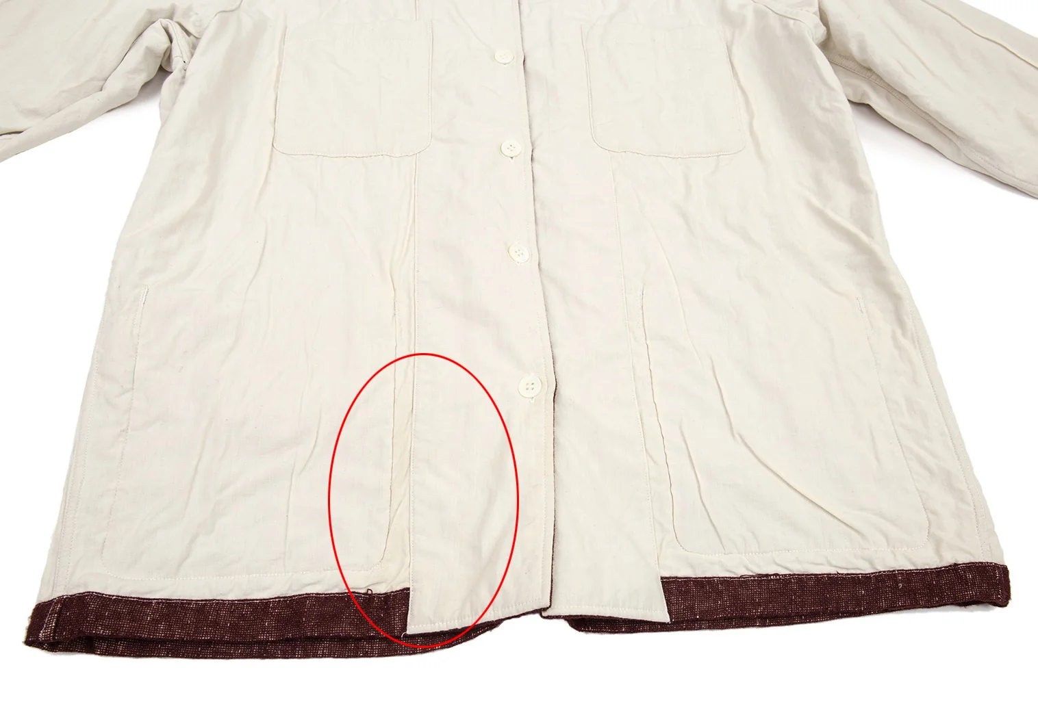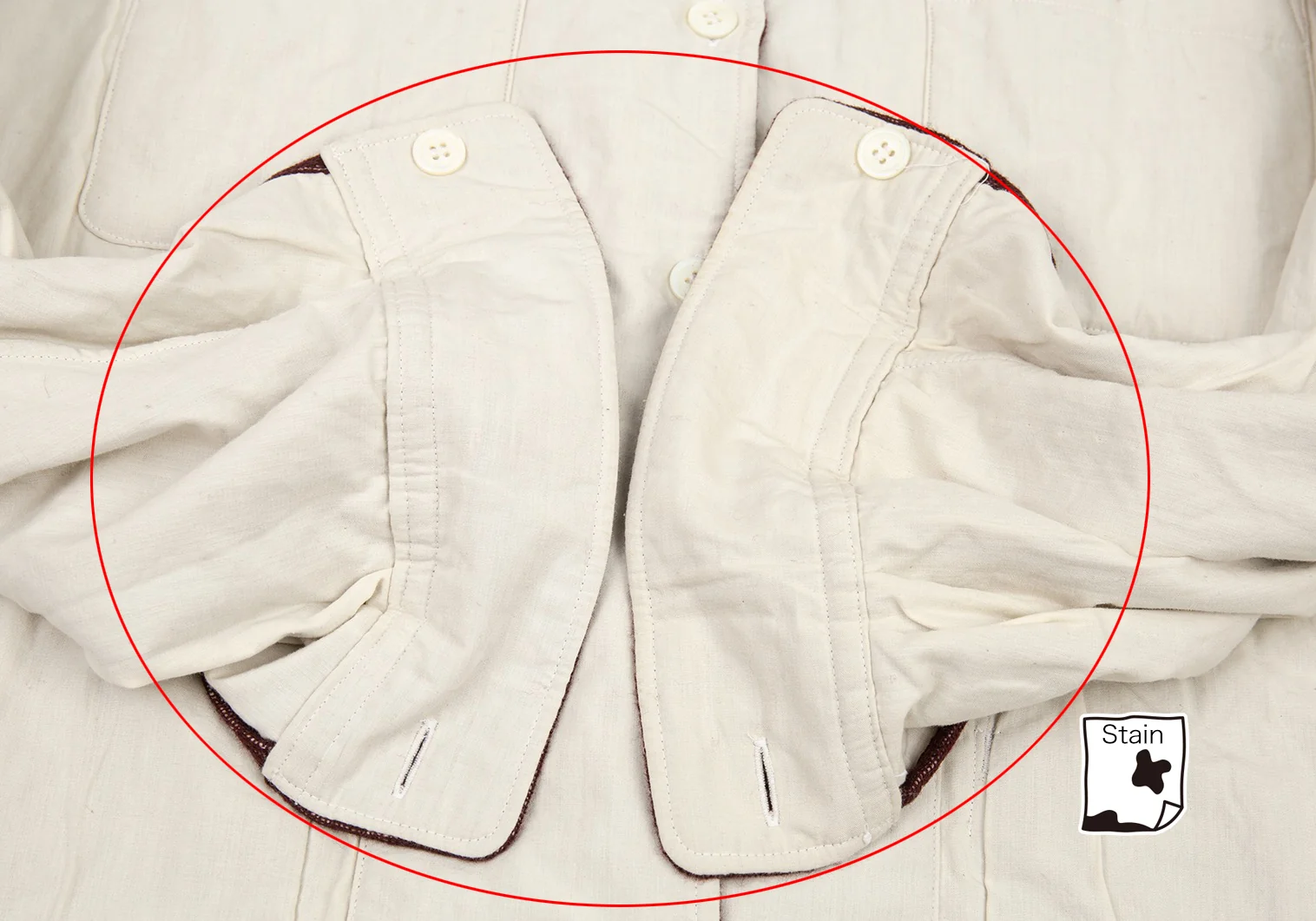 裏側袖に薄汚れ、裾に薄シミがあります(画像参照)。その他目立ったシミ、汚れ、ほつれ等なくいい状態です。クリーニング済み
