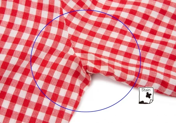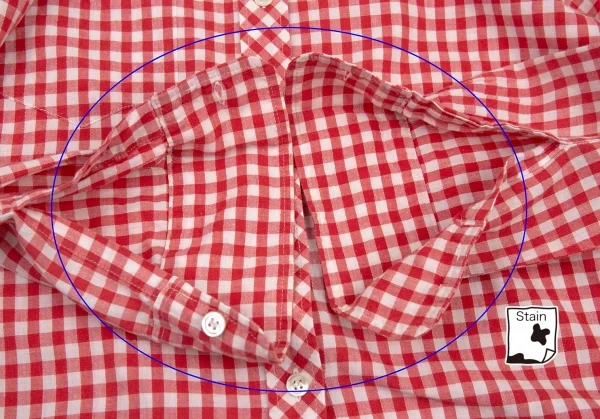 脇下・首周り・前裾に薄シミ、袖裏に薄汚れがあります(画像参照)。その他目立ったシミ、汚れ、ほつれ等ありません。クリーニング済み
