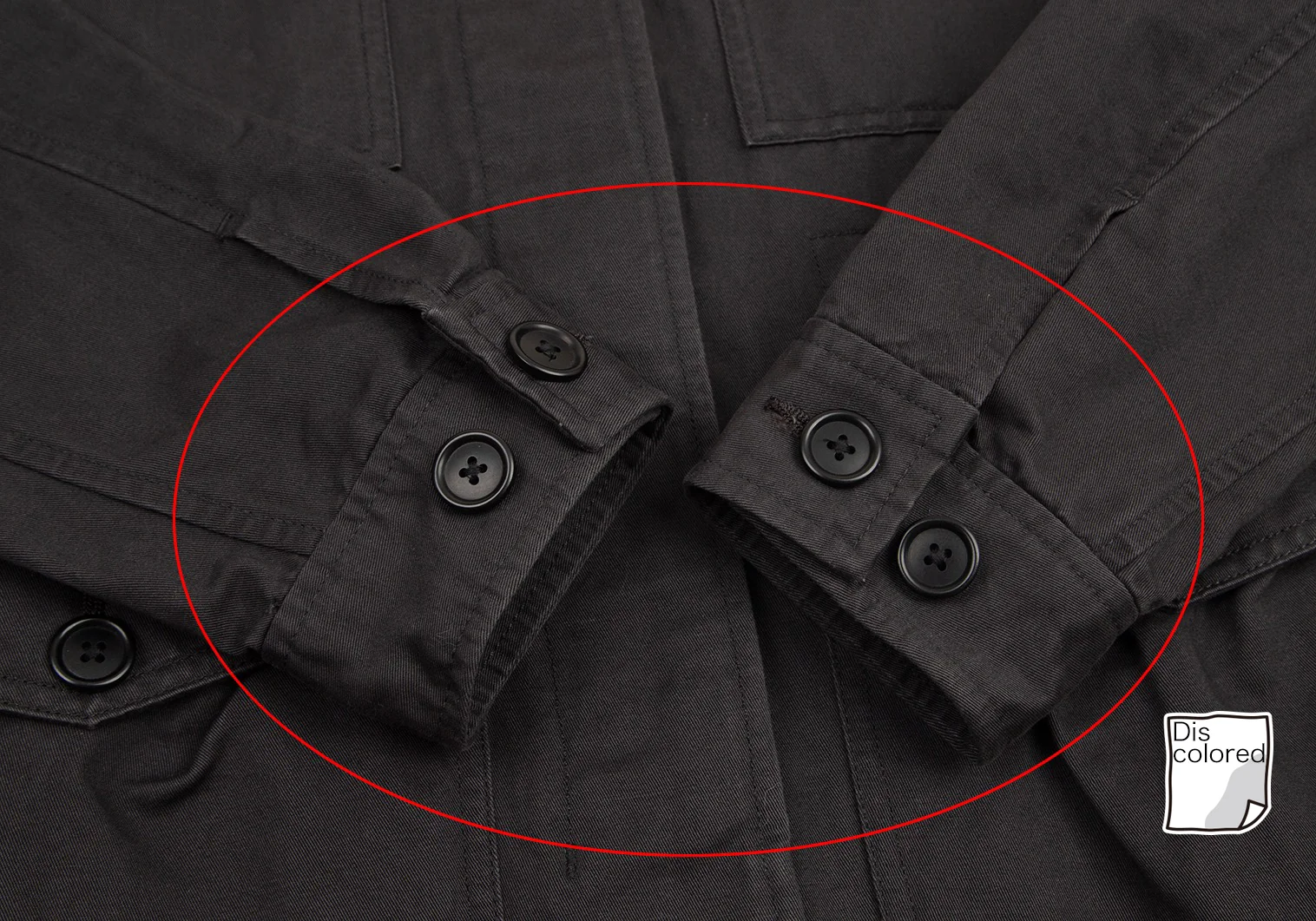 全体的に少し着用感あり。首周り・袖先・袖裏に色褪せがあります(画像参照)。その他目立ったシミ、汚れ、ほつれ等ありません。クリーニング済み